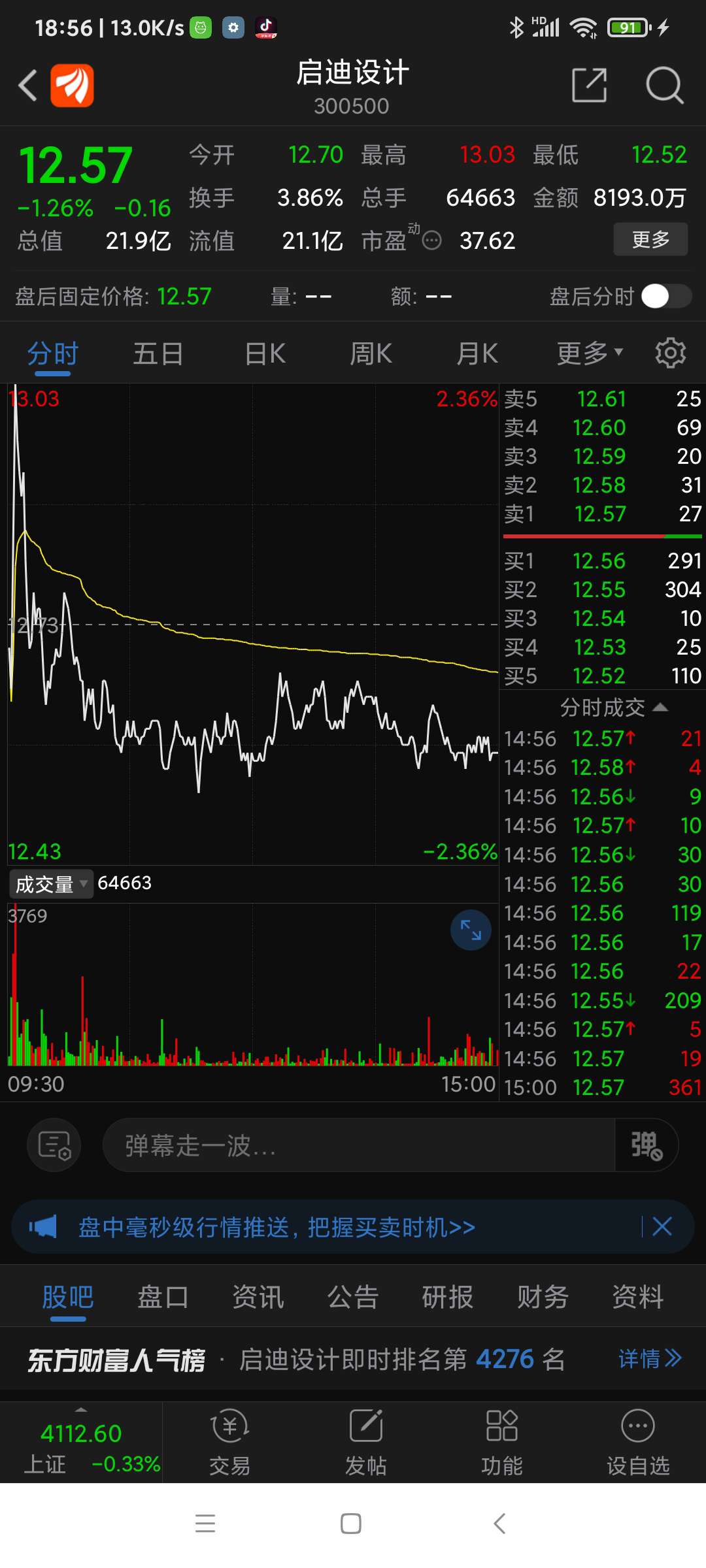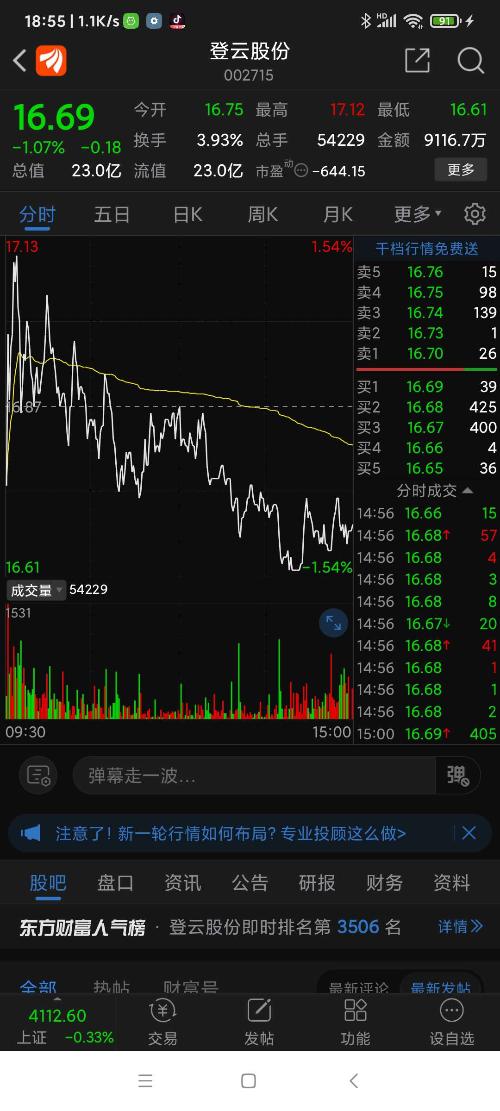 今天要不是为了买其它股,否则就逮到了,四股中现在重点关注登云和启迪。