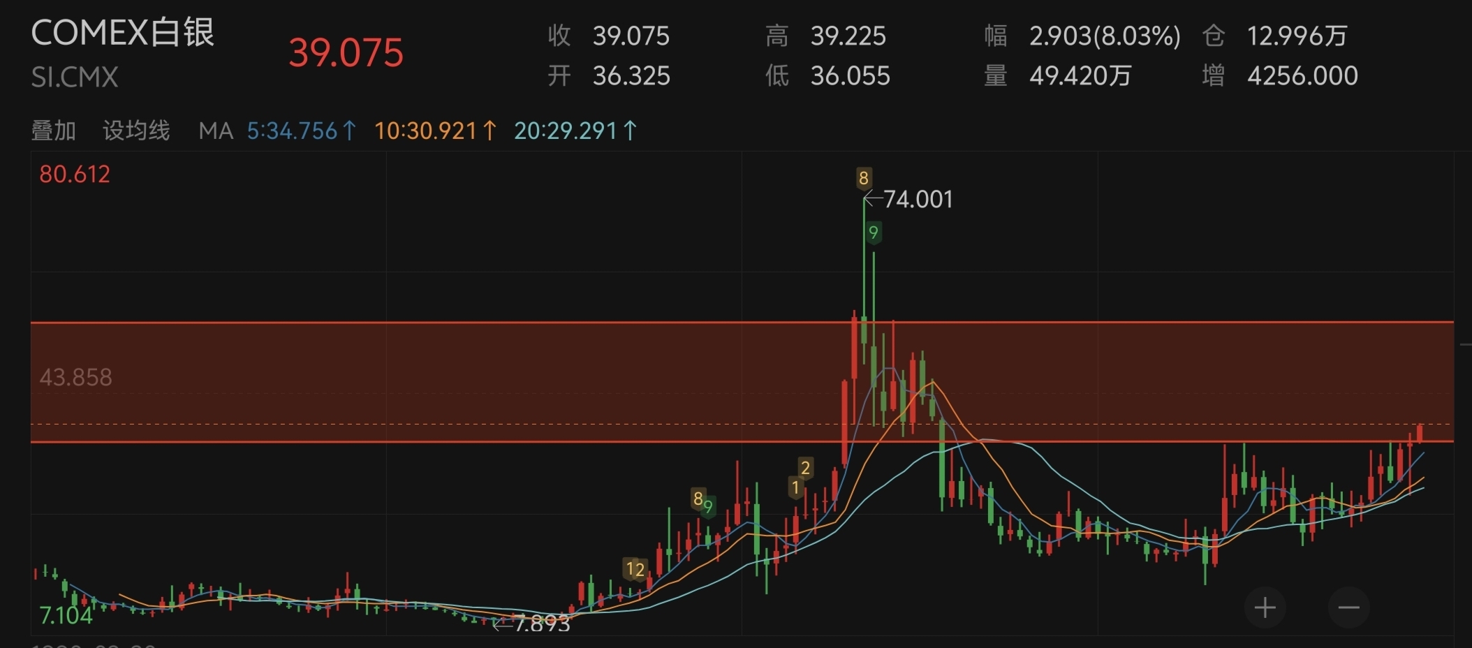 咱们简单粗暴的讲,不找数据只谈事实:为什么说白银有突破50以上概率很大,最大的就