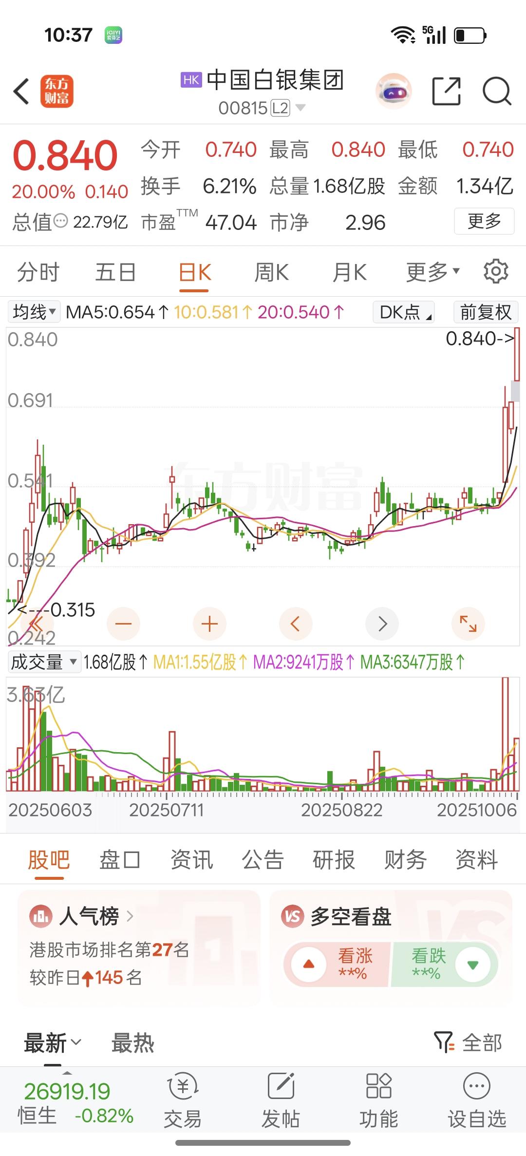 $湖南白银(SZ002716)$ 湖南白银开盘2个板打底