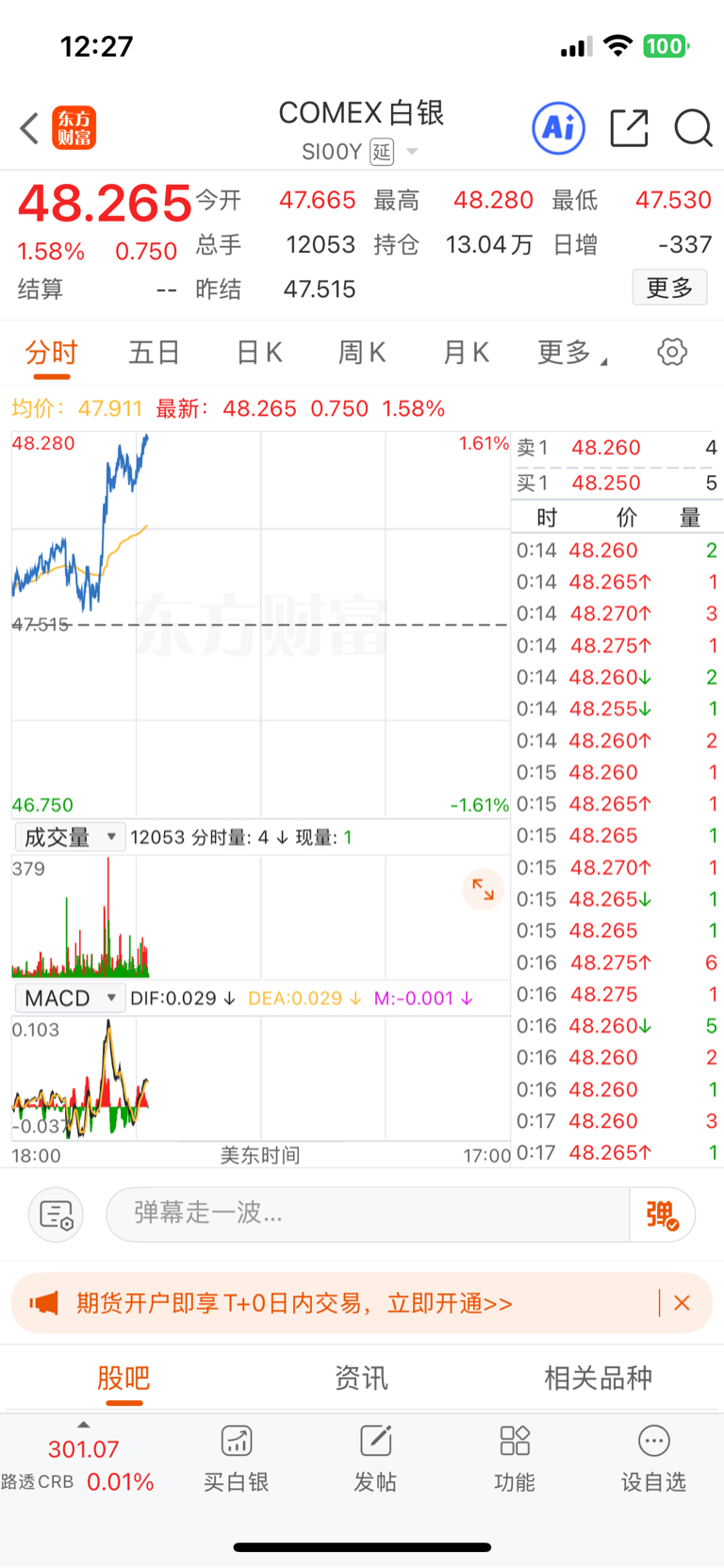 $湖南白银(SZ002716)$ 国际白银期货大涨