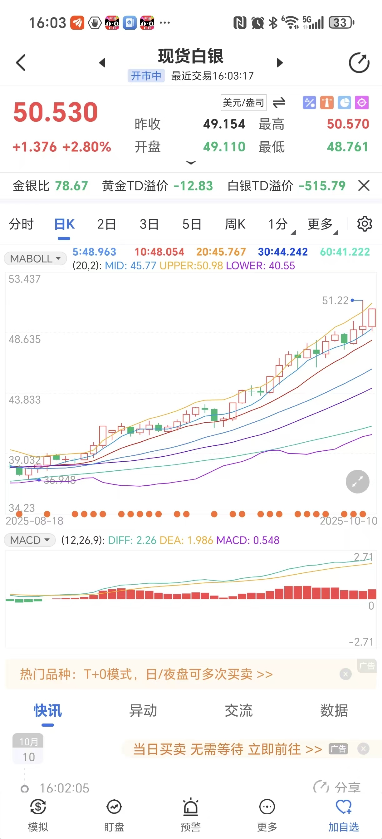$湖南白银(SZ002716)$ 白银现货在快速吃掉昨天的长上影…今天砸盘的必将收到chengfa