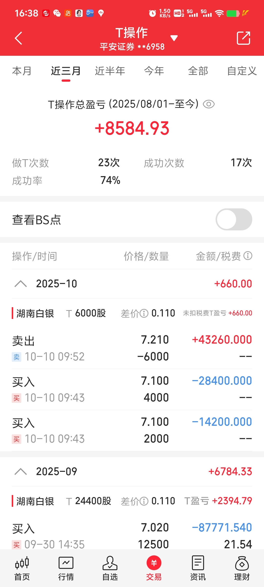 $湖南白银(SZ002716)$ 不停的做T,减少成本