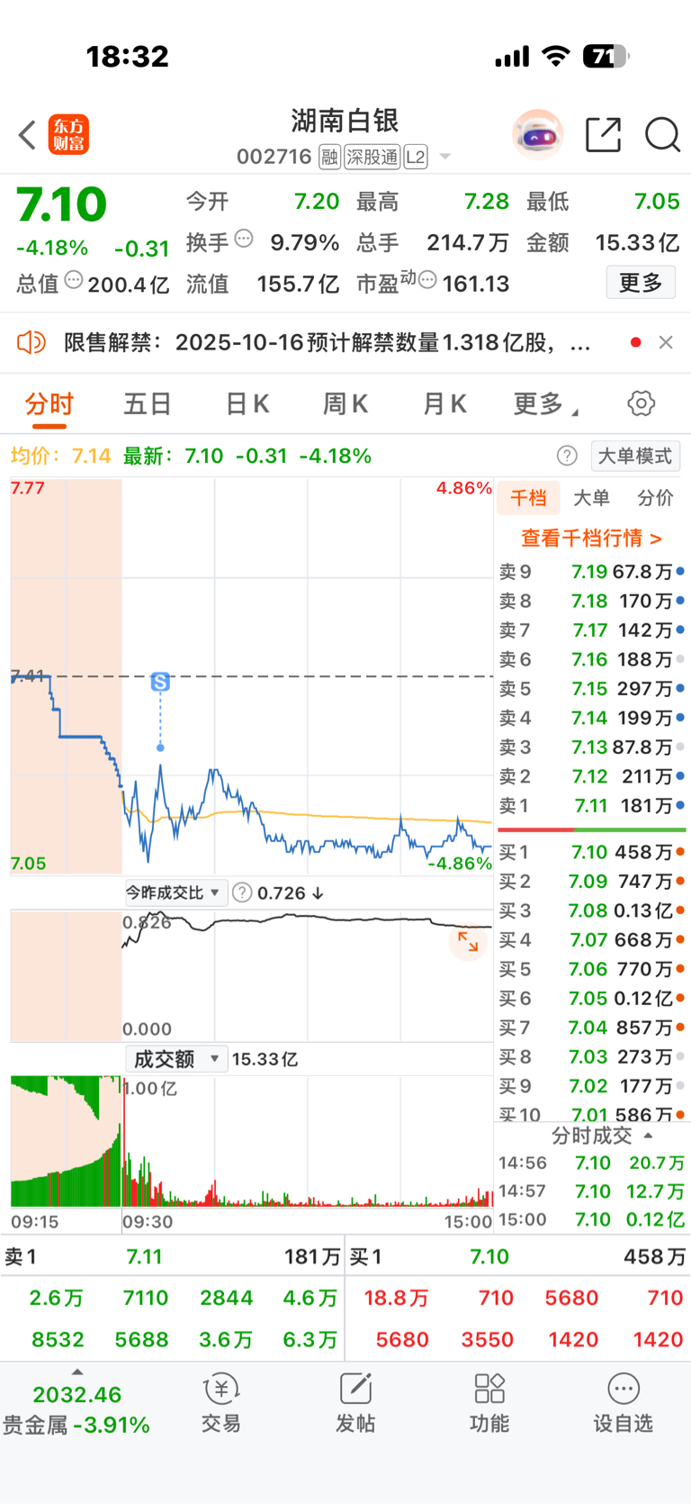 $湖南白银(SZ002716)$ 昨天刚买今天果断割肉