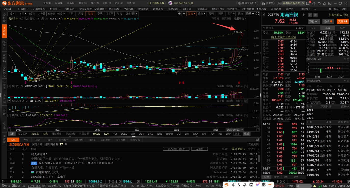$湖南白银(SZ002716)$ 这7.8的位置确实有压力。