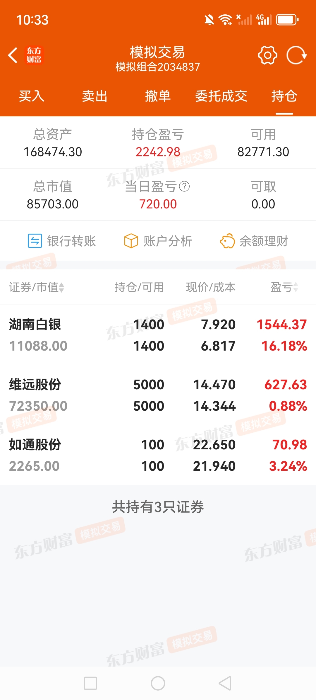 自己模拟的挣了,实际自己买入的,全亏!也是服了