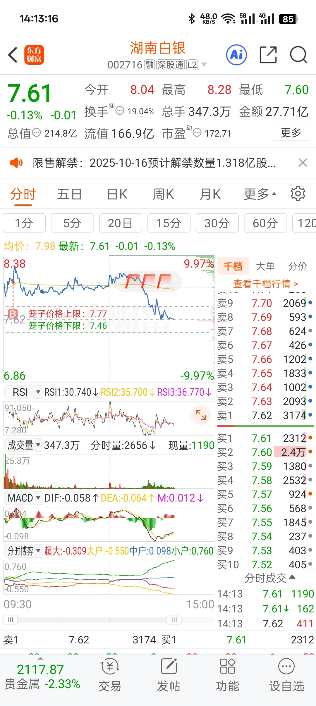 $湖南白银(SZ002716)$ 早上刚进来就被套了5个点