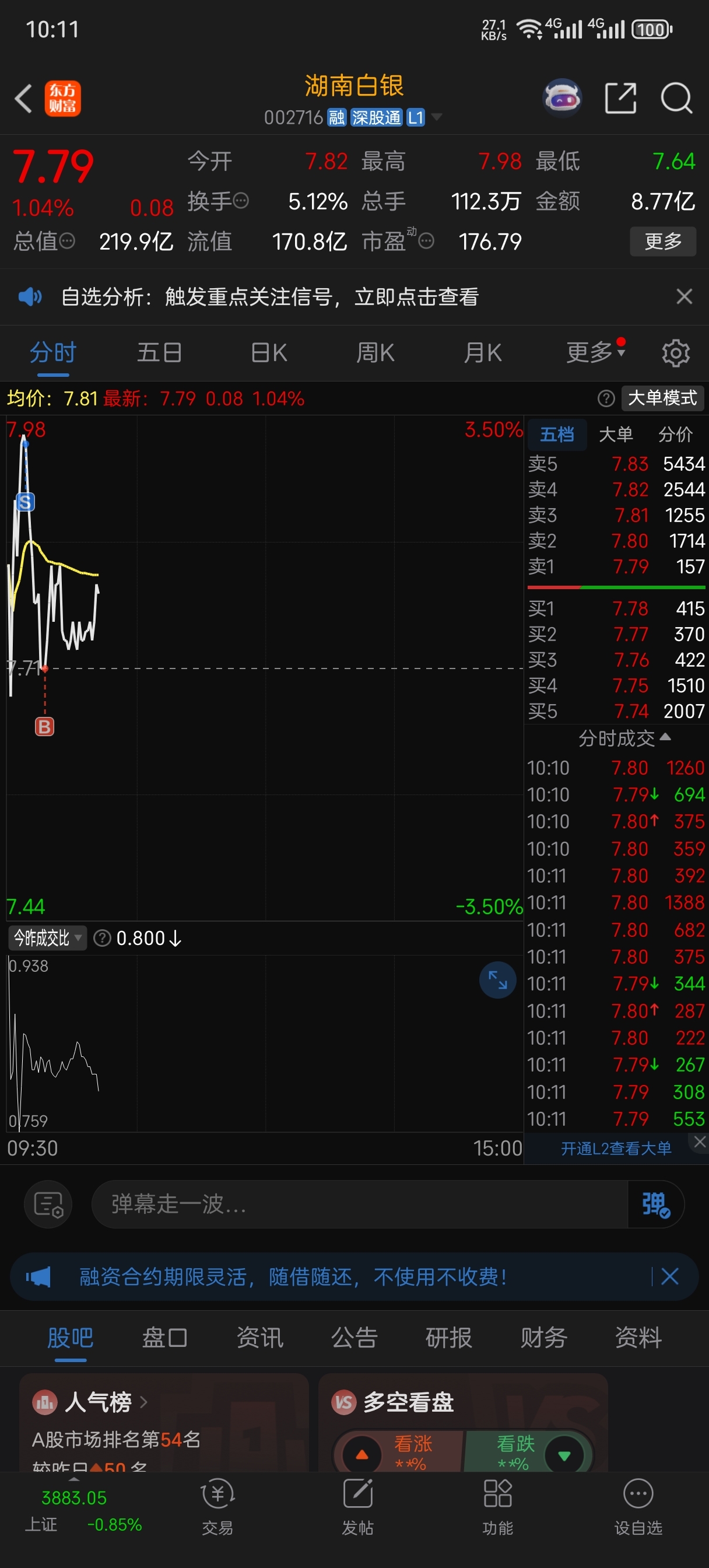 $湖南白银(SZ002716)$ 这个T做的怎么样,满仓T哦