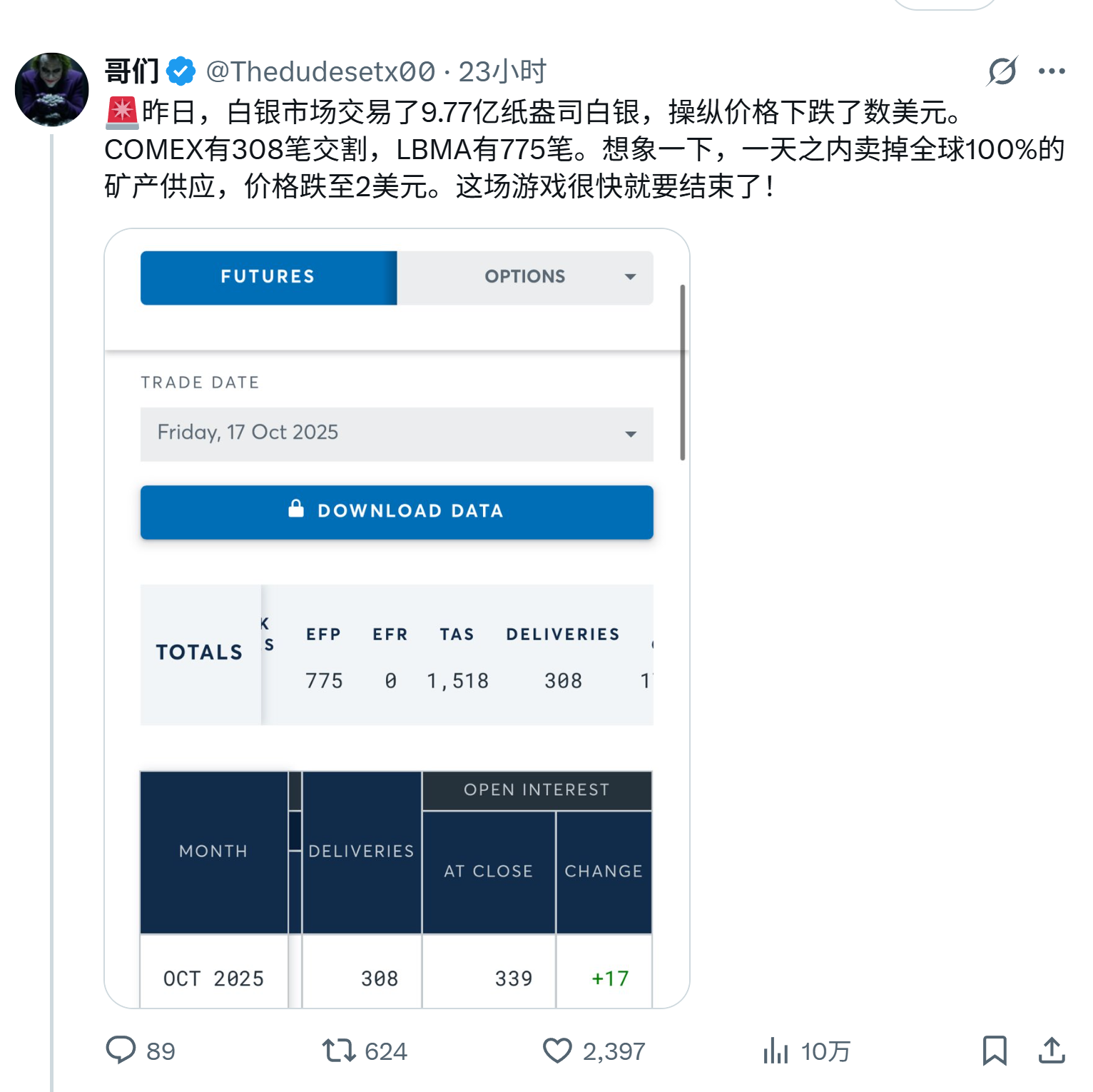 周五白银市场纸白银的成交量是9.77亿盎司,比去年的白银产量还多