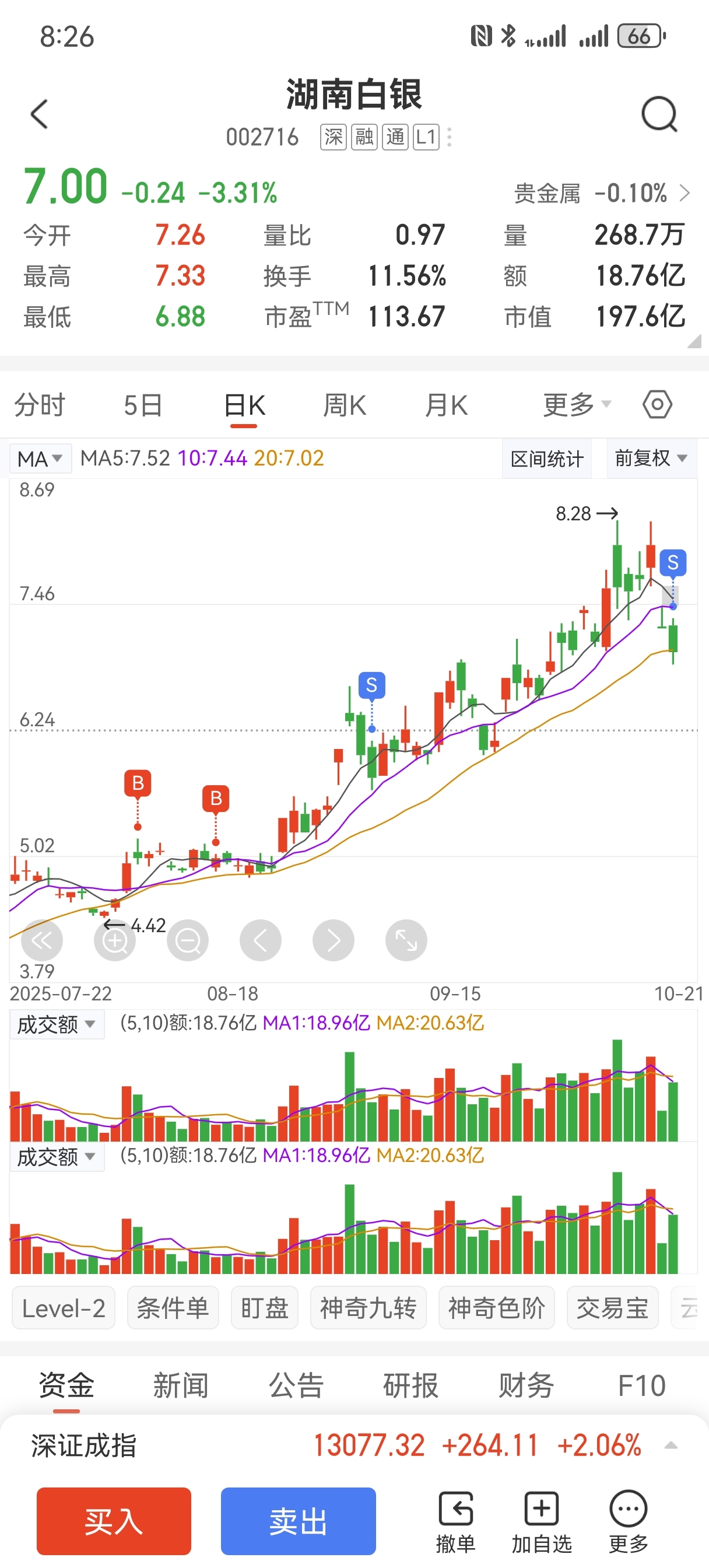 $湖南白银(SZ002716)$ 昨天全部卖光,一股不剩!今天黄金白银暴跌躲过一劫