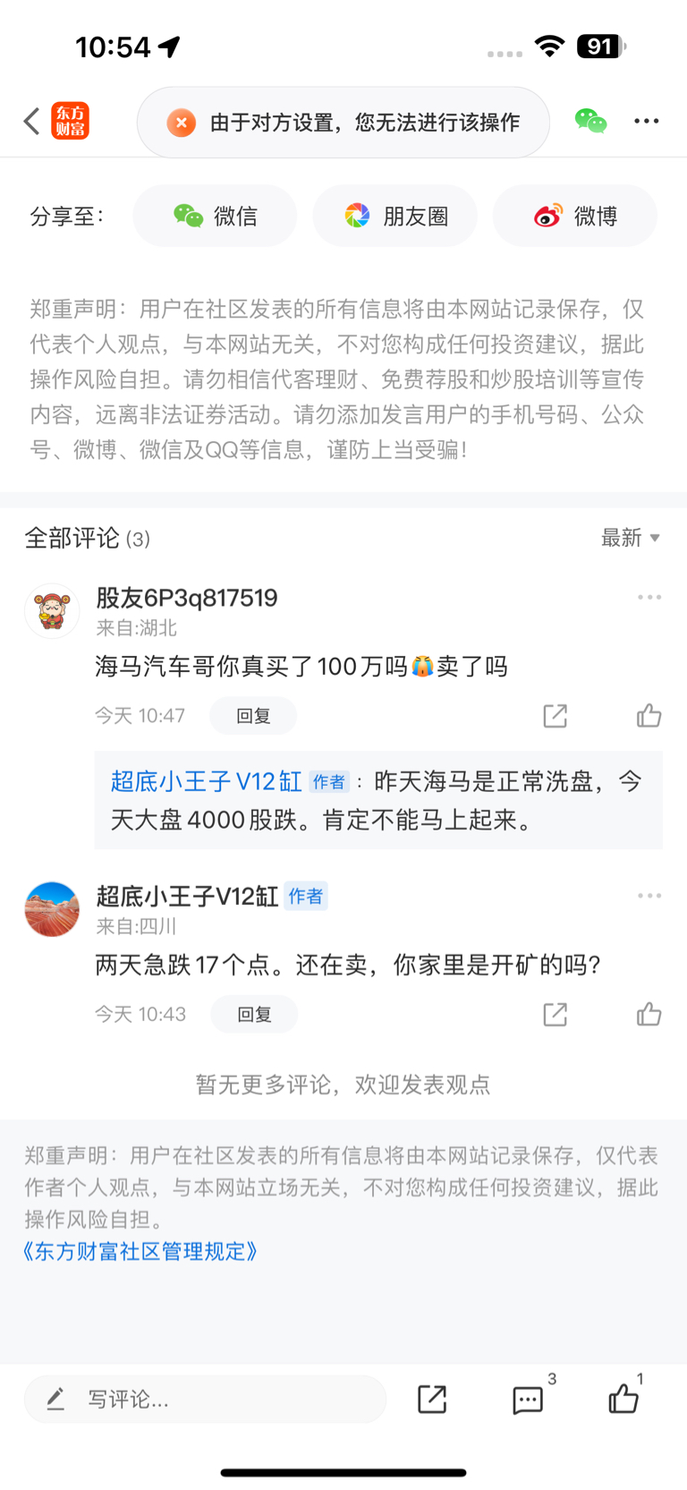 温馨提示: 1.根据《证券法》规定,禁止编造、传播虚假信息或者误导性信息,扰乱证券市场;2.用户在本社区发表的所有资料、言论等仅代表个人观点,与本网站立场无关,不对您构成任何投资建议。用户应基于自己的独立判断,自行决定证券投资并承担相应风险。《东方财富社区管理规定》