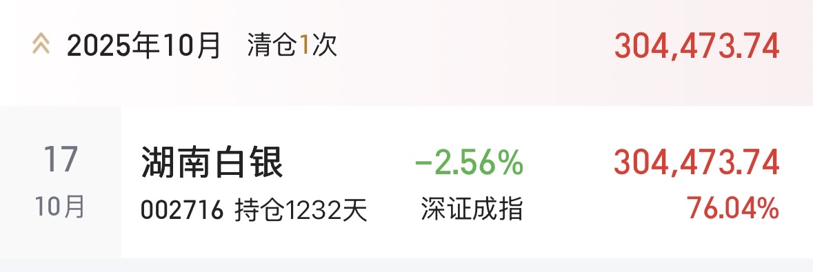 $湖南白银(SZ002716)$ 庆幸自己卖在了顶点,有缘再会。