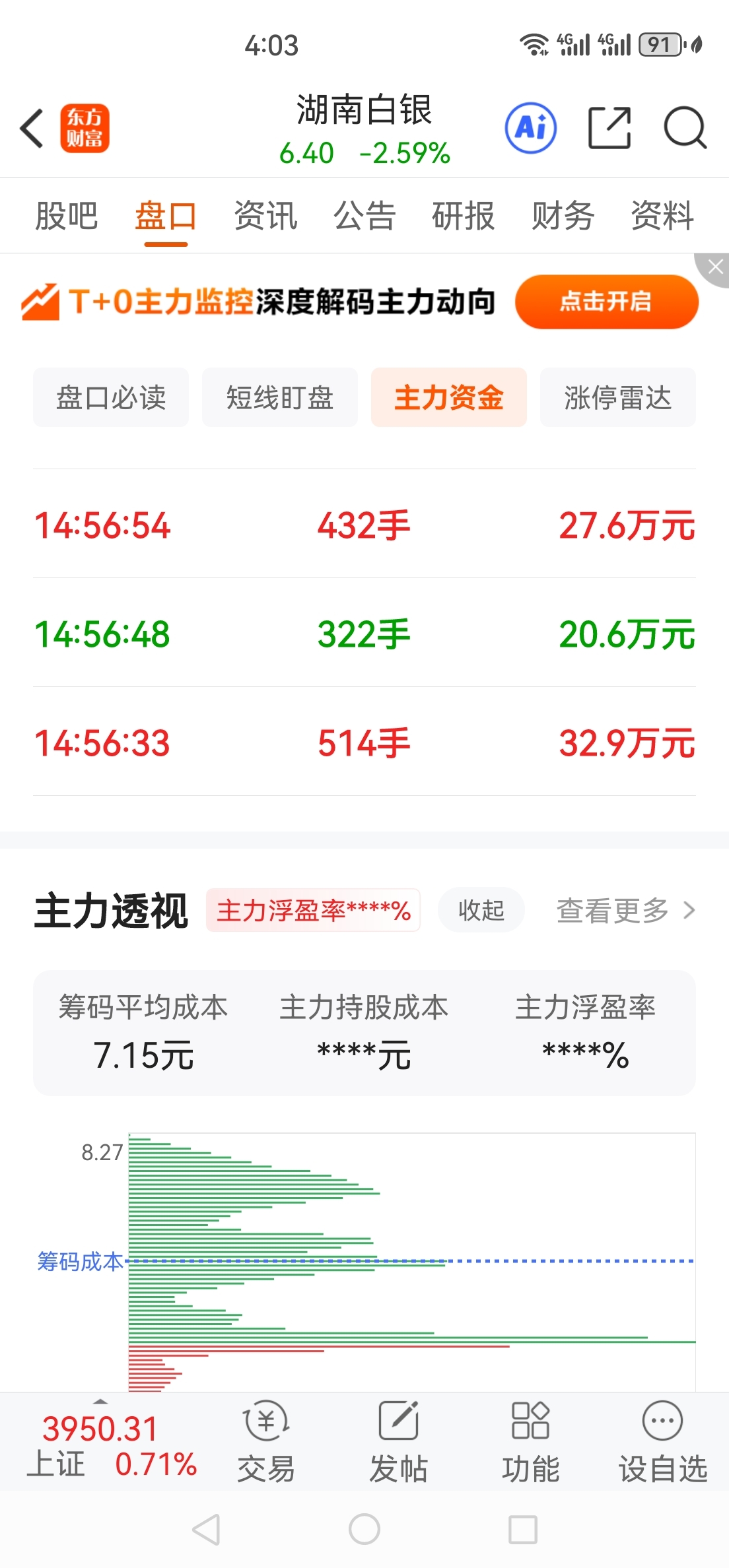 $湖南白银(SZ002716)$ 通过我不停的加仓,我的均价比主力的价格低一毛钱啦