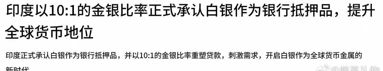 $湖南白银(SZ002716)$ 印度这是干嘛不怕人家把他黄金换空
