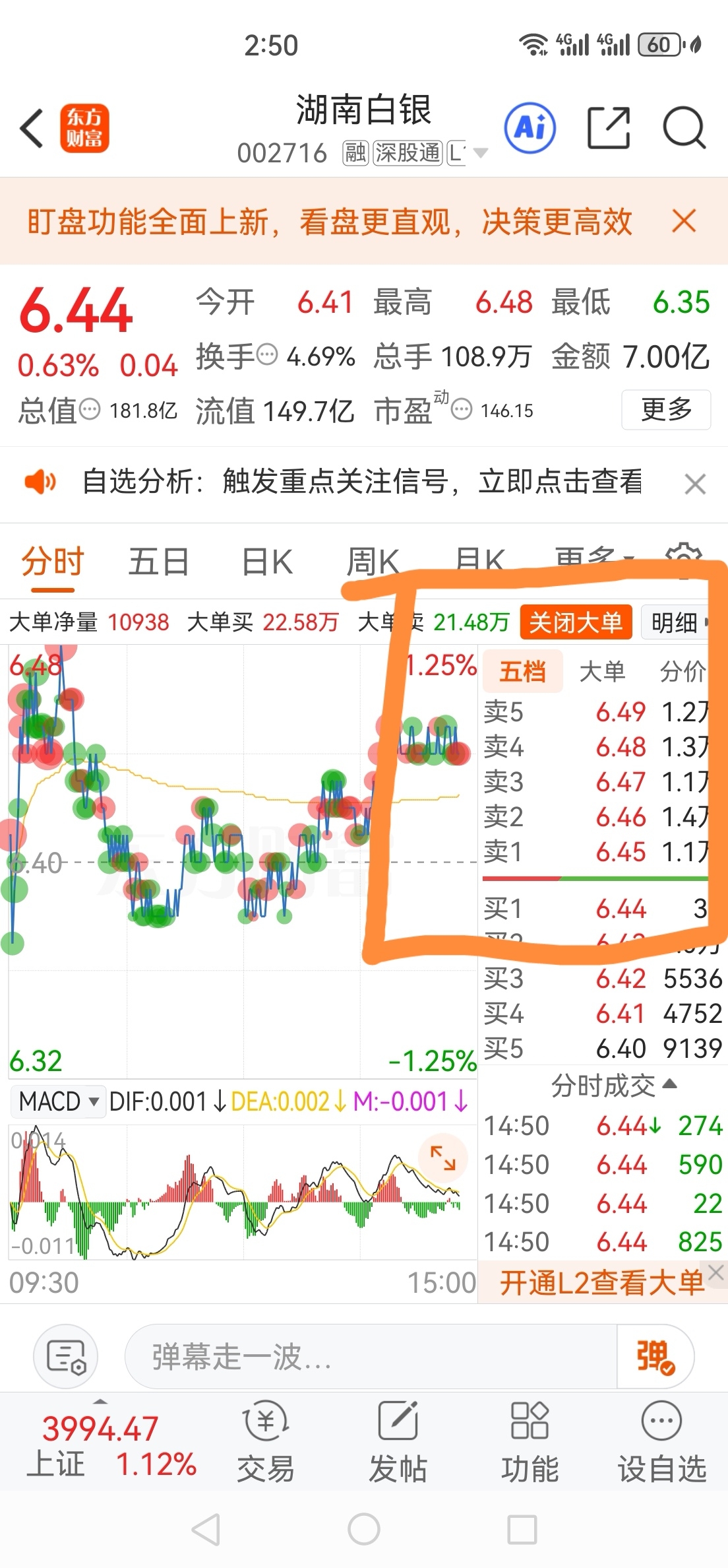 $湖南白银(SZ002716)$ 这么大的卖单,你们还敢买吗,不要买不要买不要买