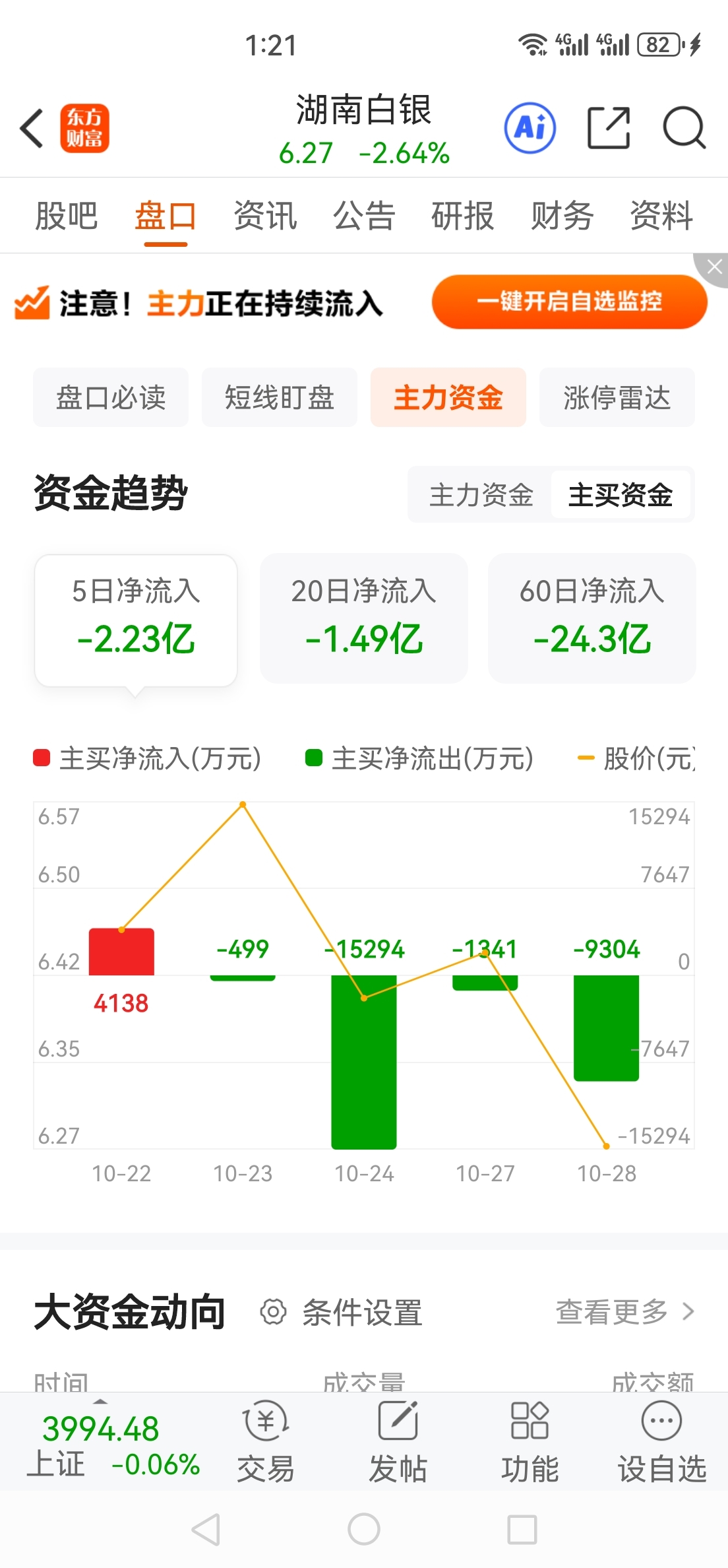 $湖南白银(SZ002716)$ 主力跑啦一个亿啦,什么鬼