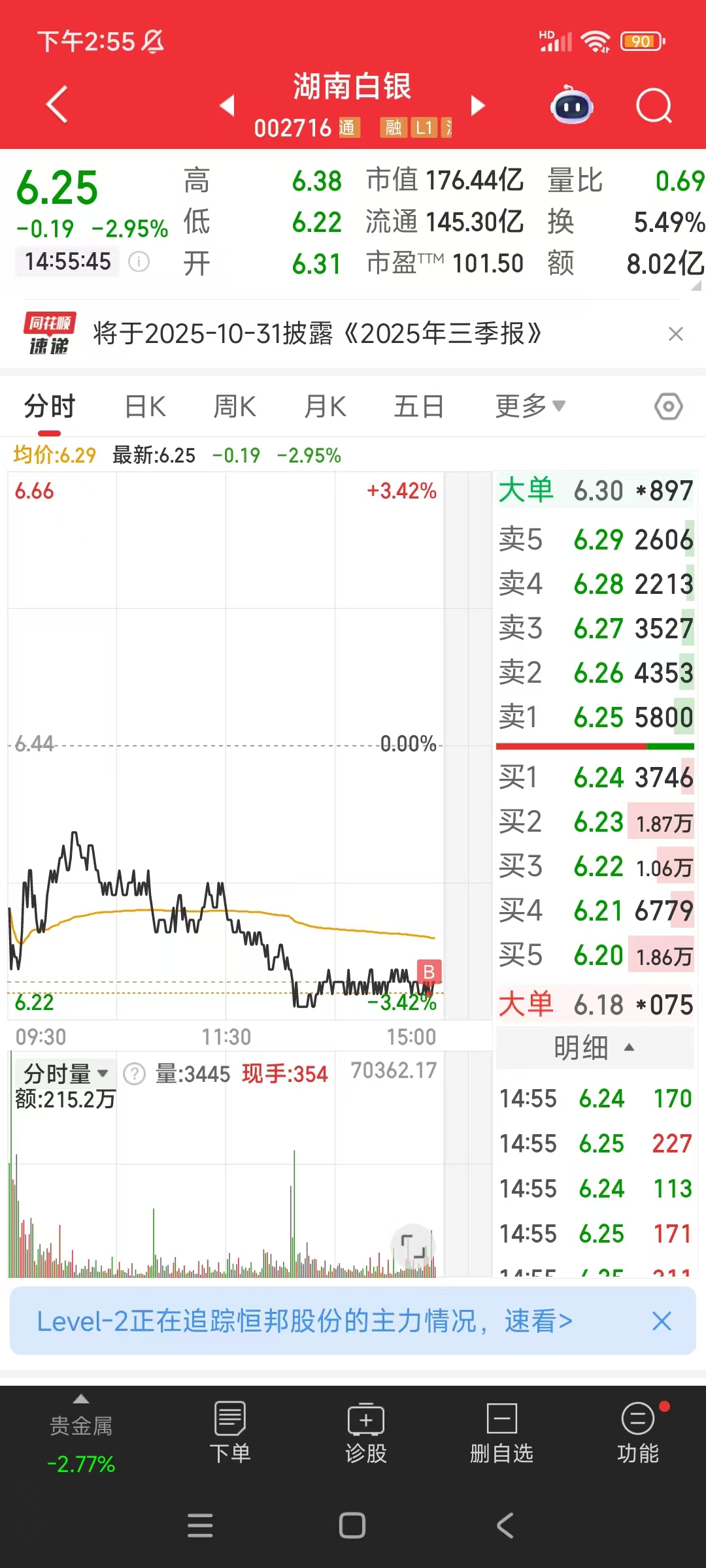 $湖南白银(SZ002716)$ 6.24抄底3成仓