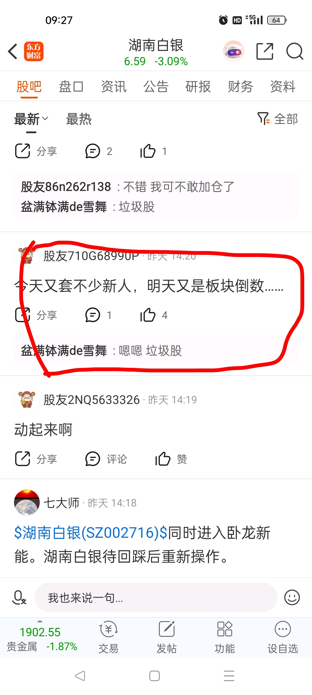 $湖南白银(SZ002716)$ 这庄就这德行,今天板块倒数第一……