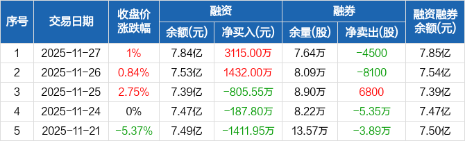 湖南白银:融资净买入3115万元,融资余额7.84亿元(11-27)