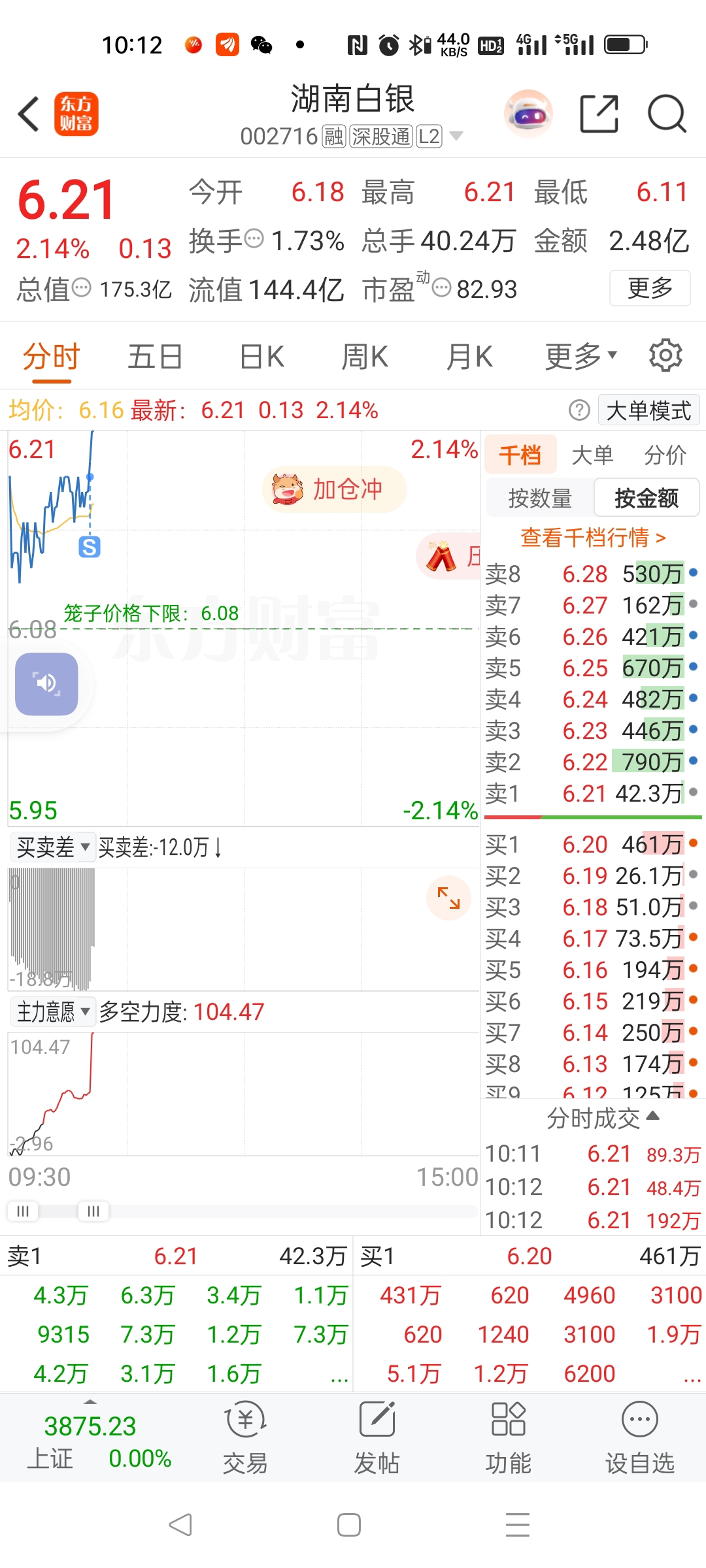 $湖南白银(SZ002716)$ 清了 他也涨了