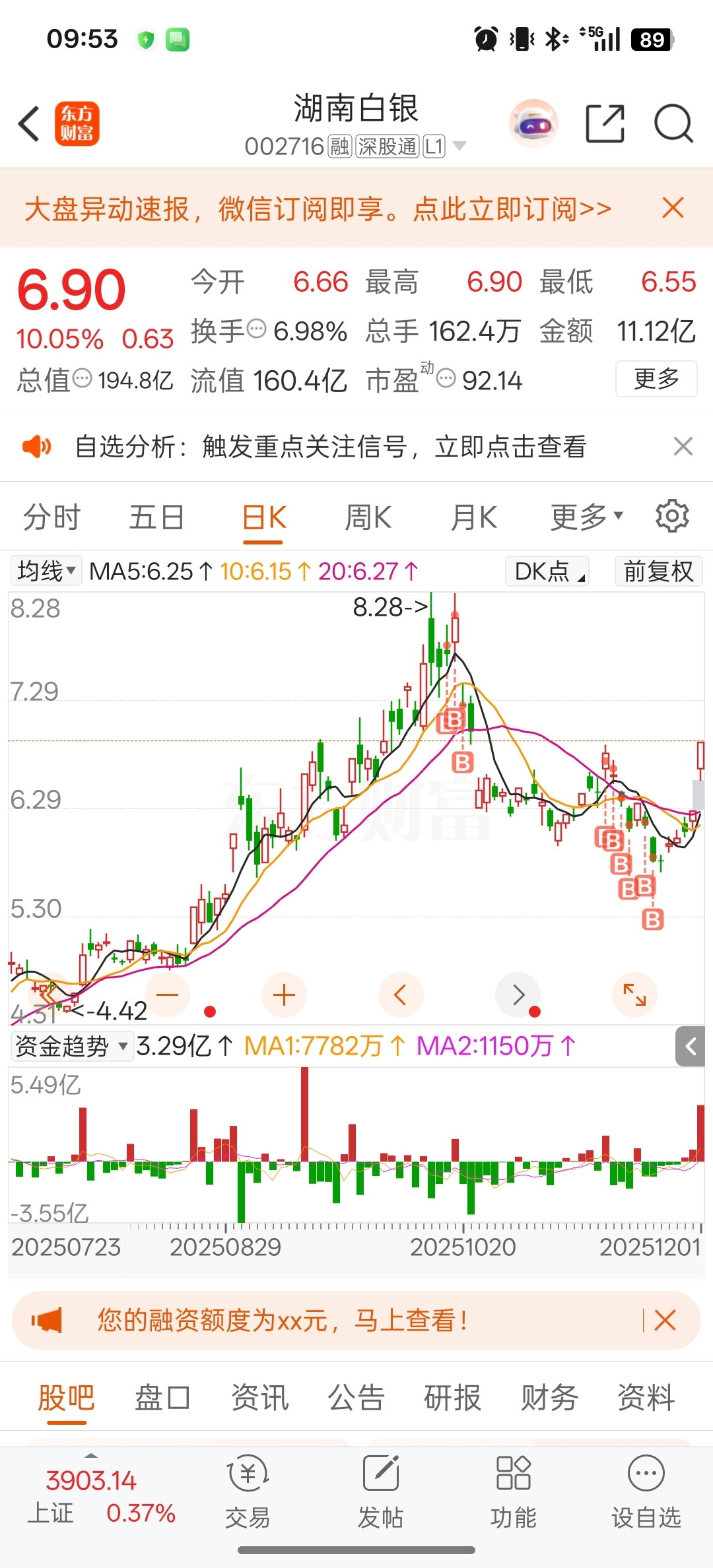 $湖南白银(SZ002716)$ 明天还能继续涨不啊,愁人,拿了好久了,成本6.91,还想年底之前赚点钱呢