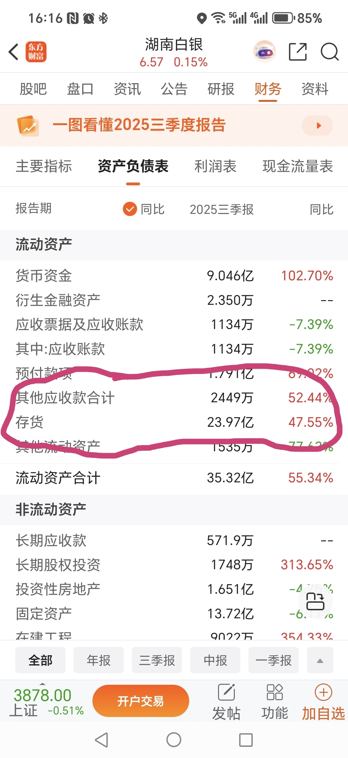 $湖南白银(SZ002716)$ 我就看好他这么多存货,这可是白银了,看去年的白银贡献是在60%,那说明存货最少有60%是白银,如果到现在没卖的话,白银又涨了24%,相对9月30号收盘价,大家可以推算一下他今年的业绩是多少,哈哈!