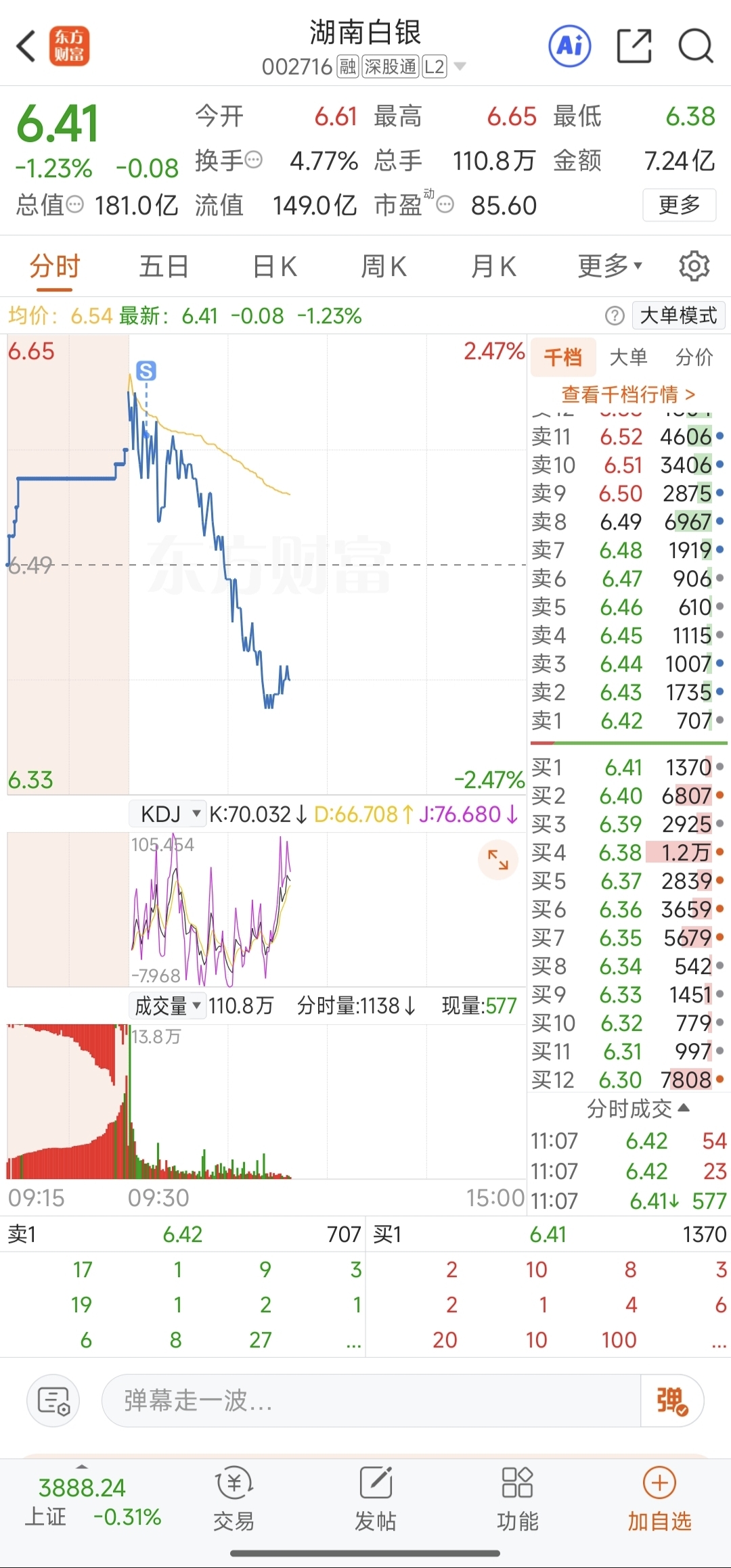 $湖南白银(SZ002716)$ 白银只在名字里,期货大涨不跟,跌的时候比谁都快