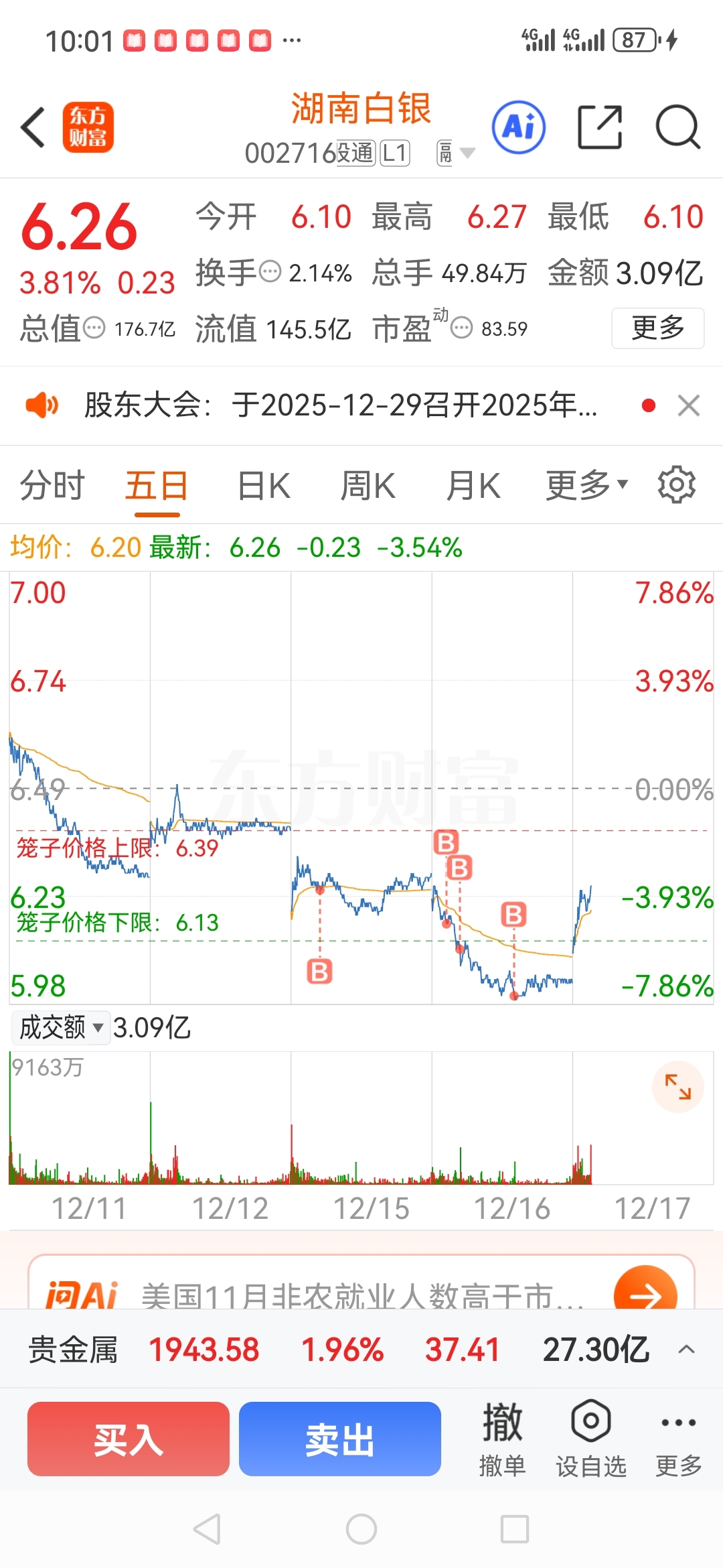 $湖南白银(SZ002716)$ 股市里别人恐慌,我贪婪是不会错的