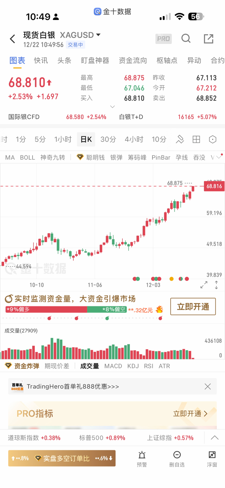 $湖南白银(SZ002716)$ 68.8了,你赶紧拉涨停6.88啊