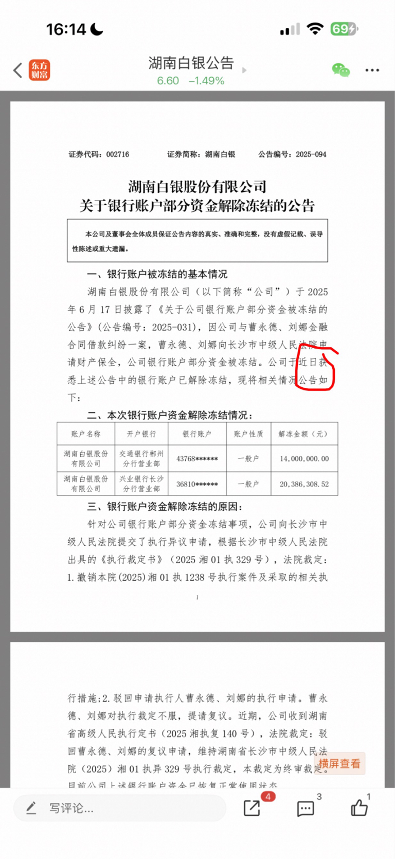 $湖南白银(SZ002716)$ 划重点!近日!近日是哪天?在国际银价马上超过70的时间节点,发出这个消息?公司想干嘛?给市场一点利好?希望主力拉升?好让他们减持?还是说主力和公司一伙?主力庄家筹码收集差不多了?憋出一个消息出来,让庄家拉升?既然有钱了,大股东别减持了行不行?