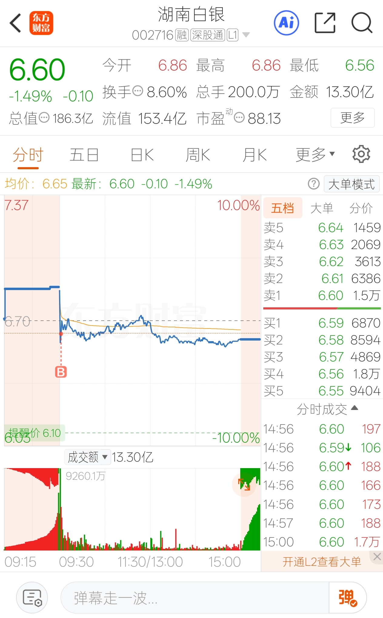 $湖南白银(SZ002716)$ 买点还行,看明天了,能不能吃上一口