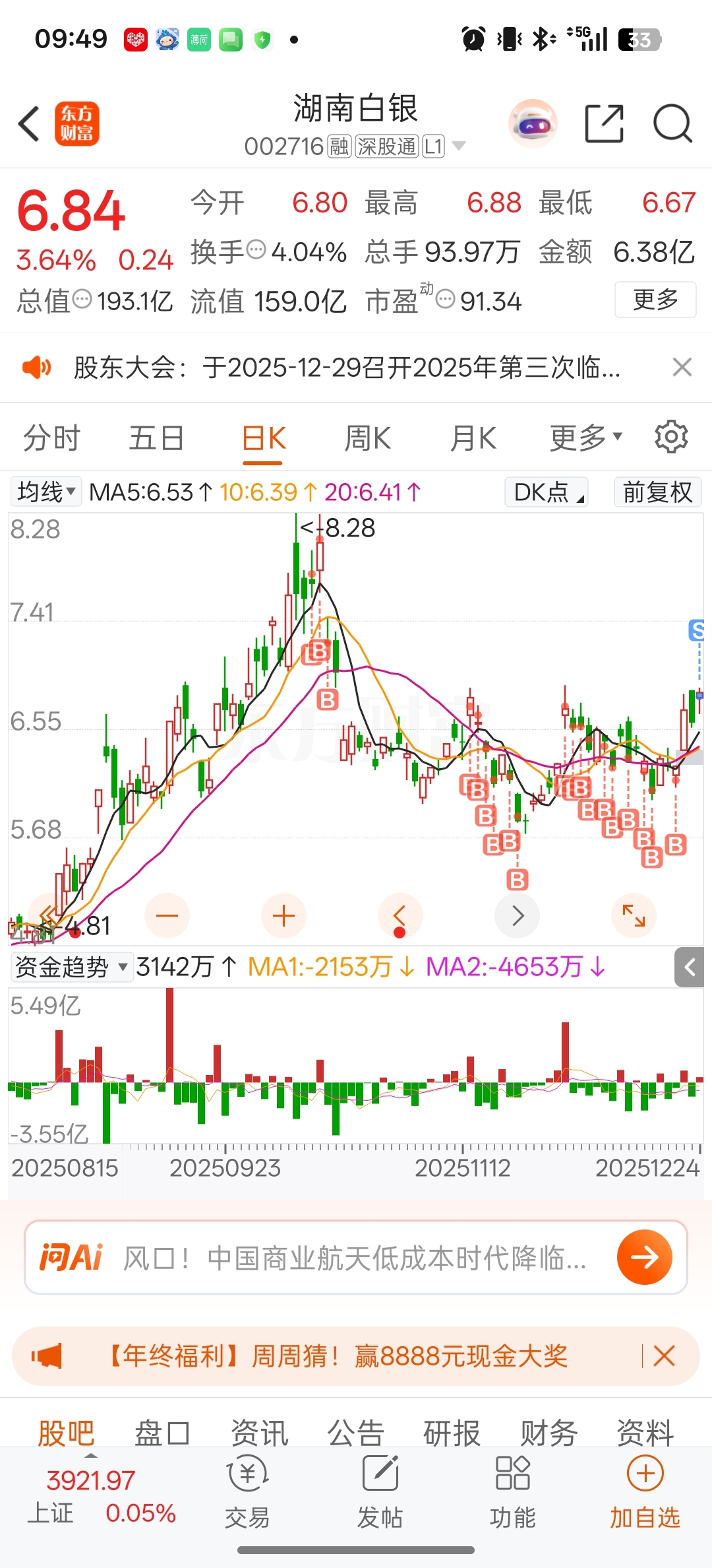 $湖南白银(SZ002716)$ 从最高点买你,赚了2w块钱,实在是懒得看你了,再见