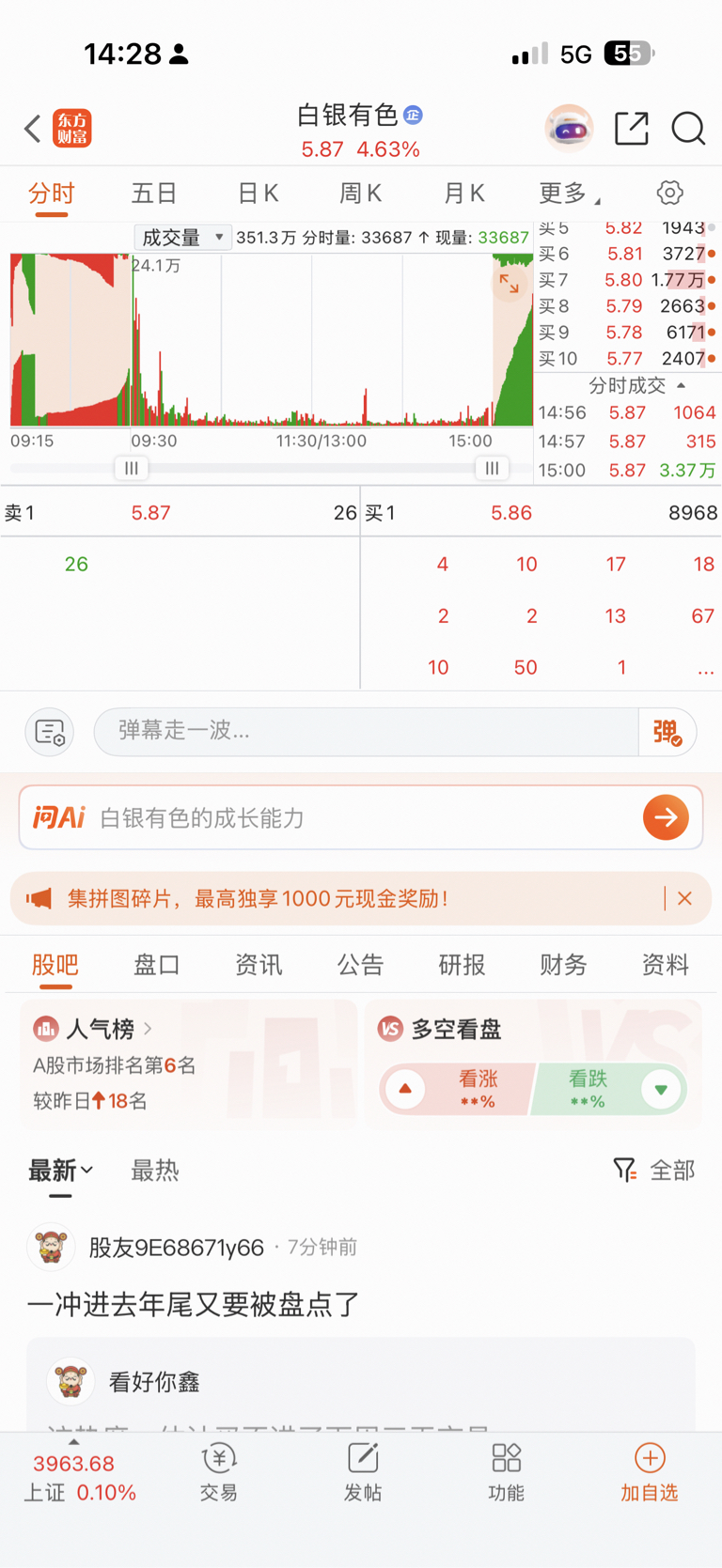 $湖南白银(SZ002716)$ 涨幅比不过!人气也比不过!散户兄弟姐妹们!把人气刷起来!