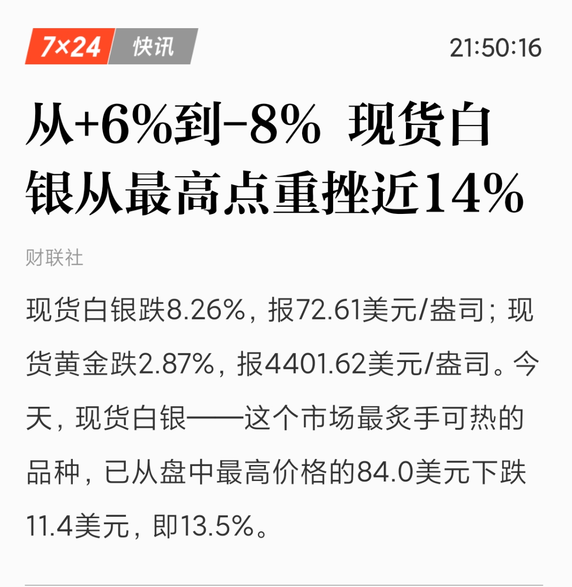 $湖南白银(SZ002716)$ $白银有色(SH601212)$ $有色50ETF(SZ159652)$ #银价突然大跳水!倒车接人还是见顶信号?#