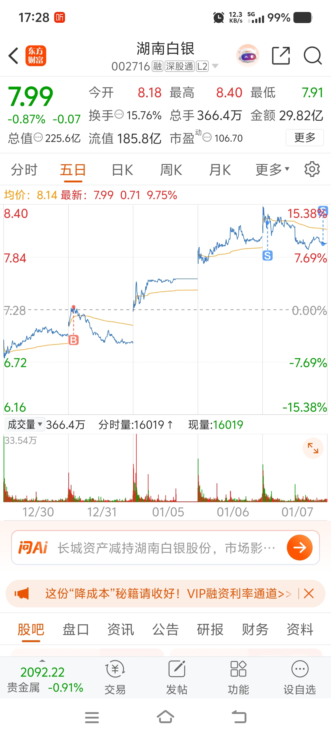 $湖南白银(SZ002716)$ 不符合预期,早盘先出半仓,下午没表现清仓。