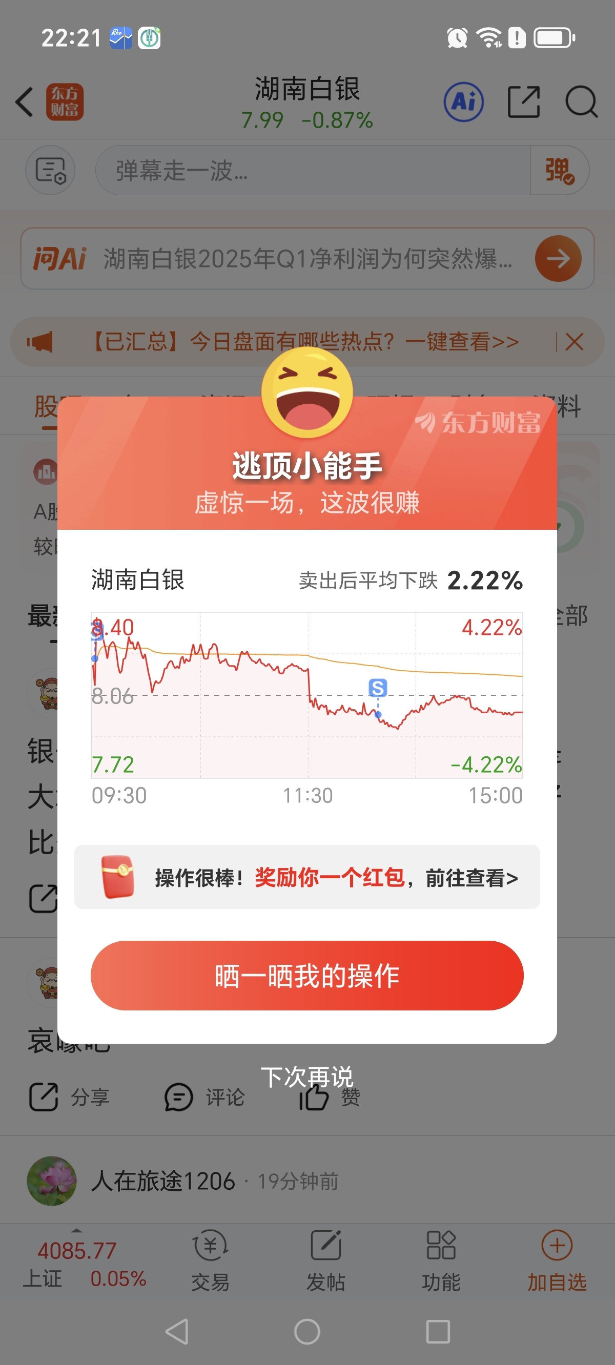 $湖南白银(SZ002716)$ 明天估计有飞刀,今天跑完了