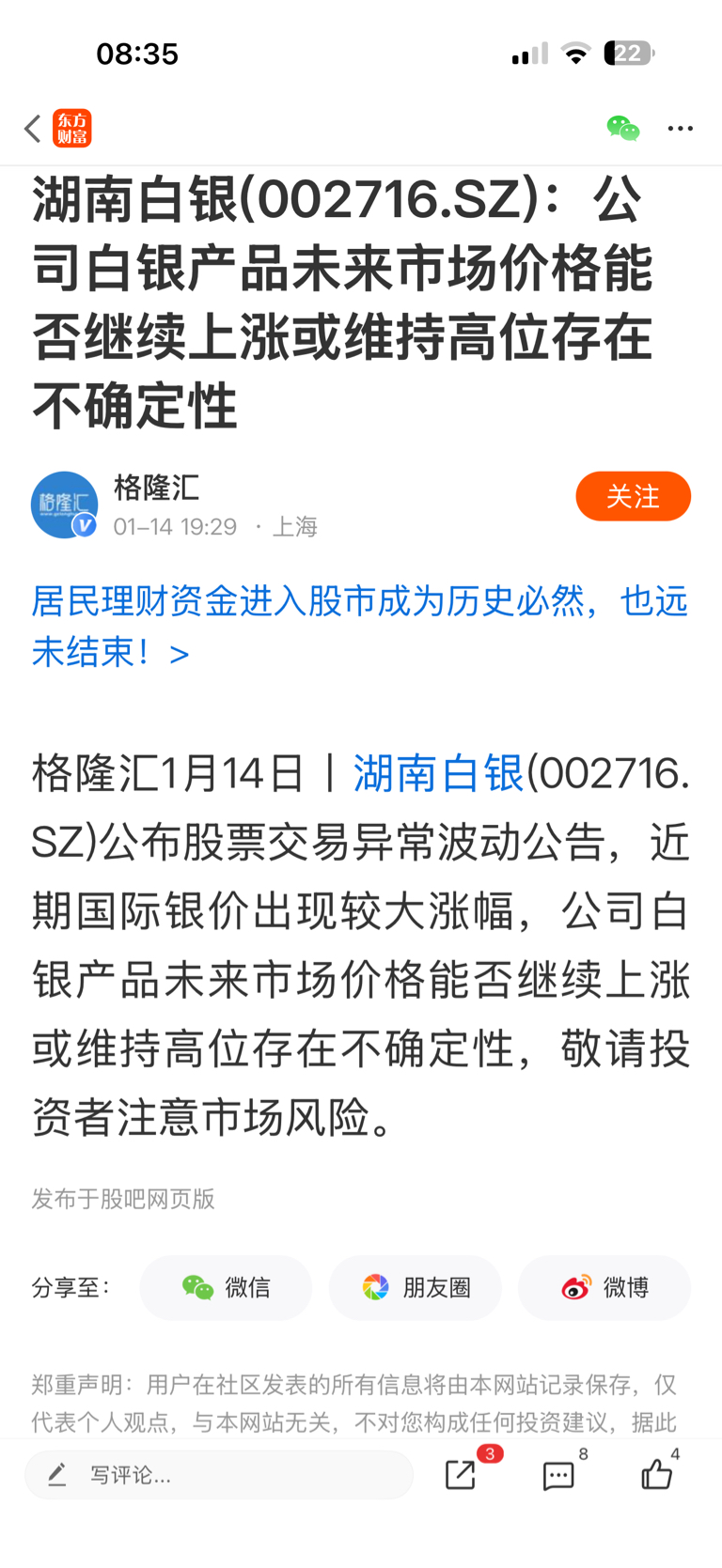 $湖南白银(SZ002716)$ 公司说股价,会随期货价格波动,意思是你看到的COMEX,沪银上涨,他就涨