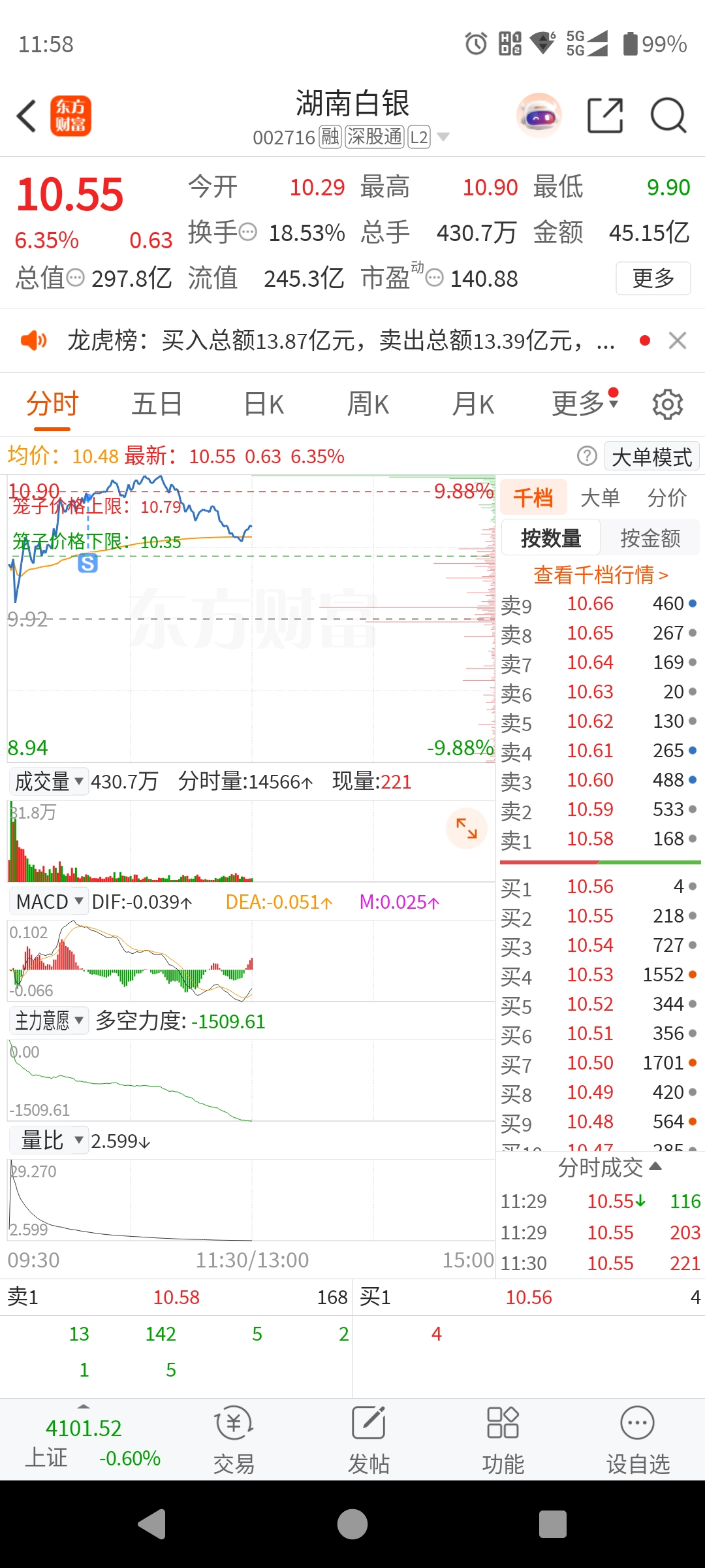 昨天9.9满仓买的,今天10.75全部出了,后面如果给机会盘整到10块以下,我还