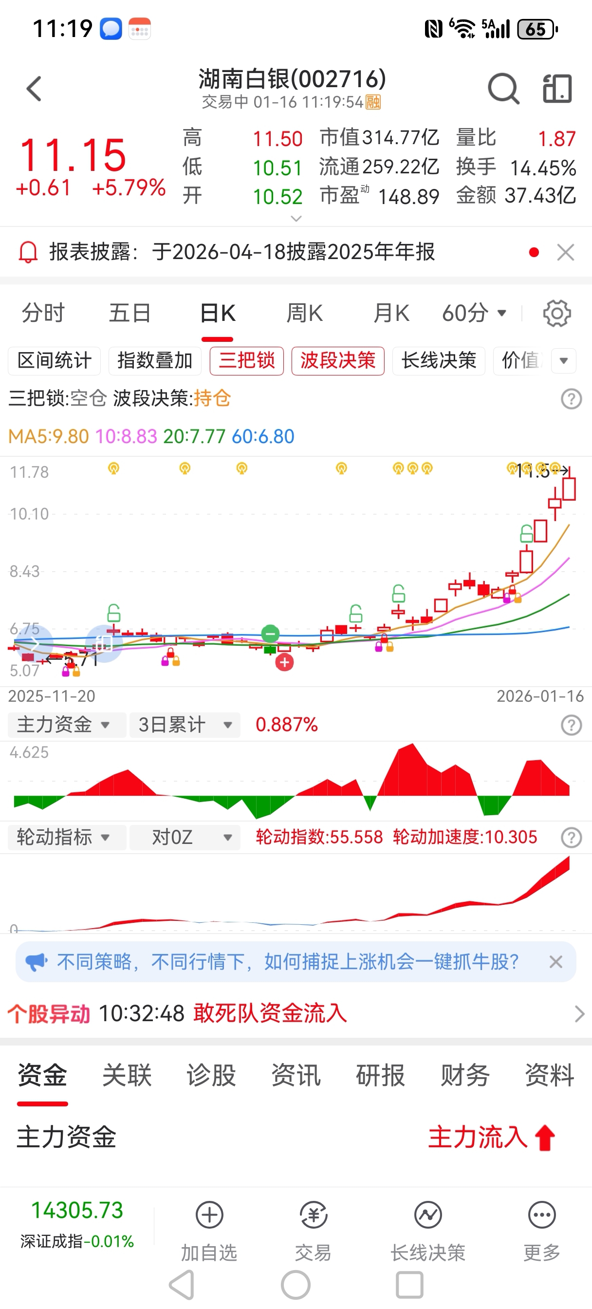 $湖南白银(SZ002716)$ 红肥绿瘦,炒股必选,不是吗?