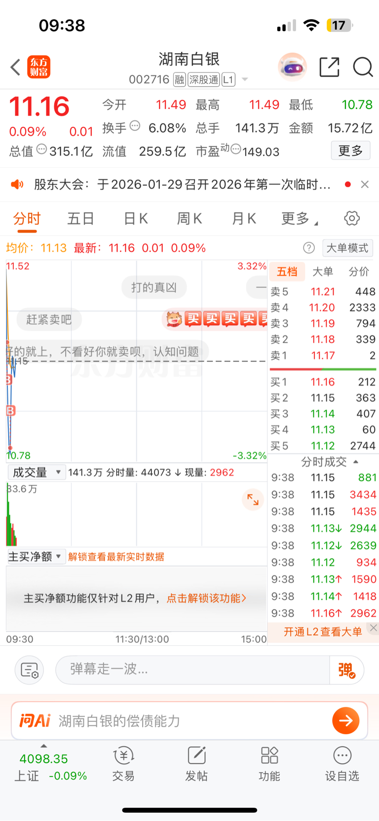 温馨提示: 1.根据《证券法》规定,禁止编造、传播虚假信息或者误导性信息,扰乱证券市场;2.用户在本社区发表的所有资料、言论等仅代表个人观点,与本网站立场无关,不对您构成任何投资建议。用户应基于自己的独立判断,自行决定证券投资并承担相应风险。《东方财富社区管理规定》