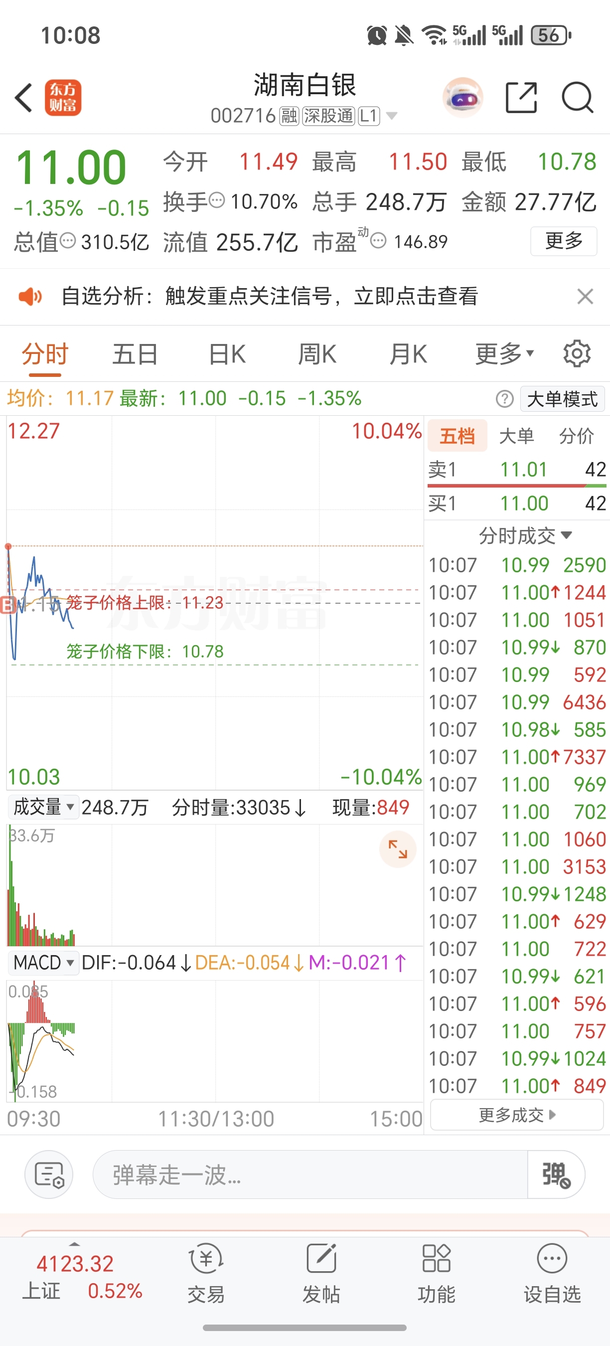 $湖南白银(SZ002716)$ 买在最高点了,拉兄弟一把吧!