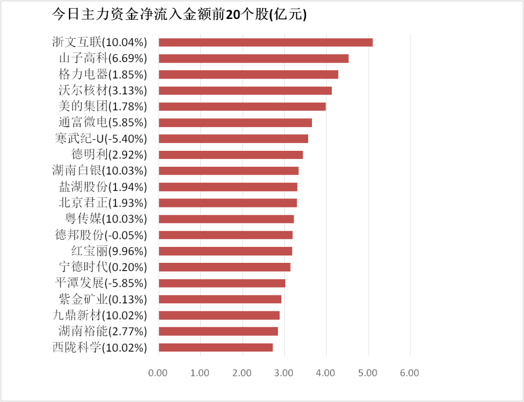 (注:此表为主力资金净流入统计,与上一张表及下一张表的机构净买入统计口径均不同)