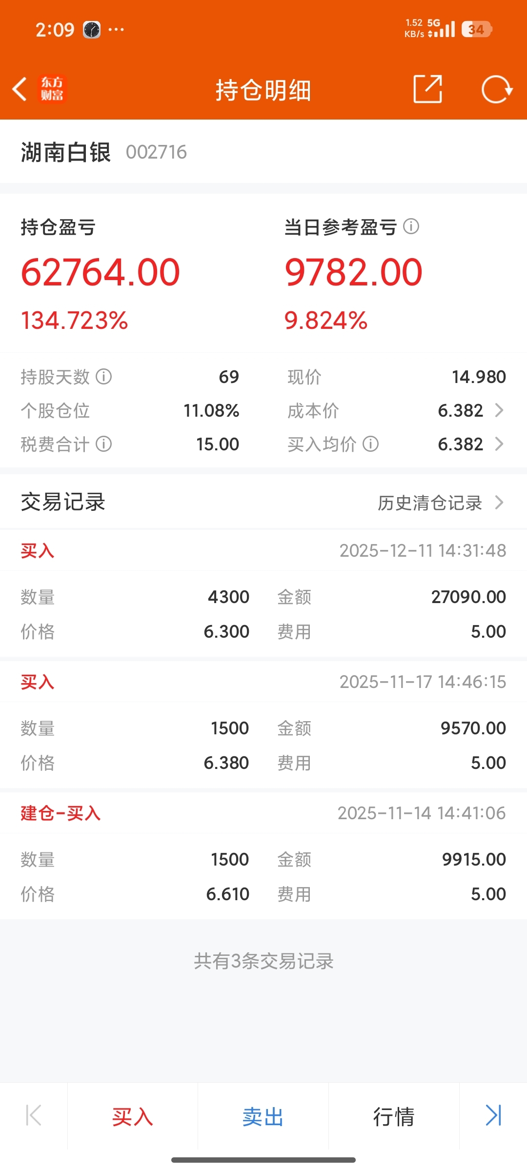 $湖南白银(SZ002716)$ 记录一下自己第一支翻了一倍的股票,努力再学习,提升认知才能获得成绩。享受每一次自己的预判验证,做概率大的事。#炒股日记#