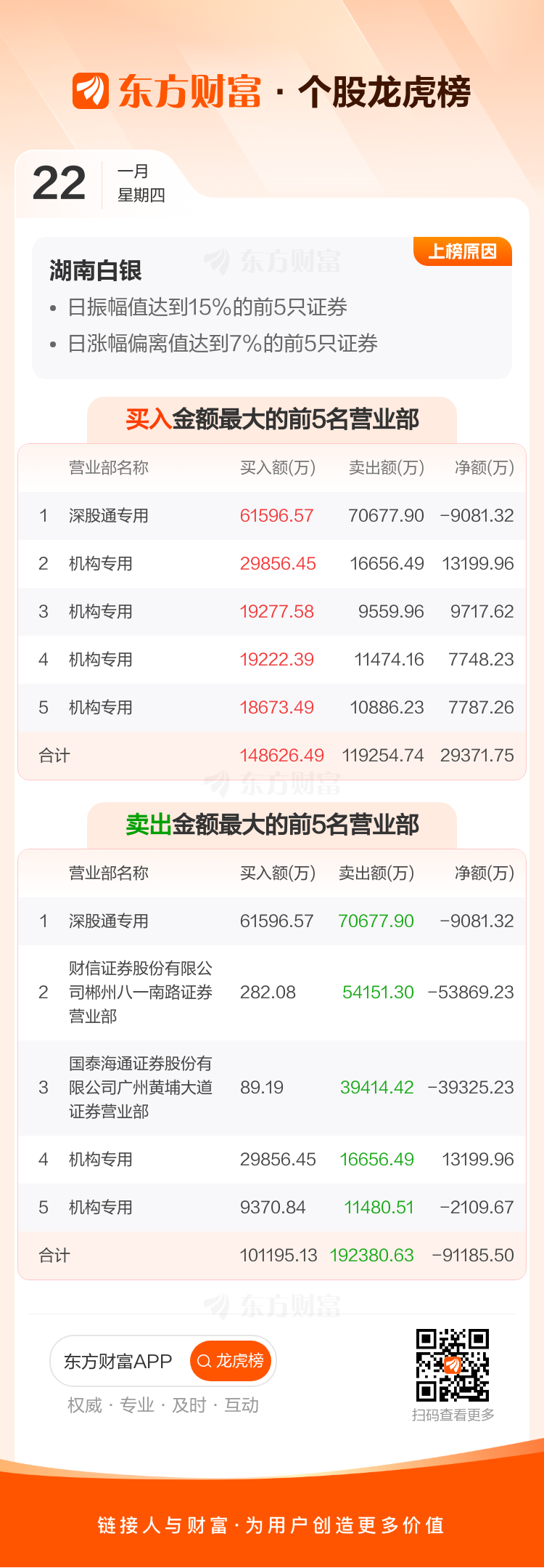 湖南白银(002716)龙虎榜数据(01-22)