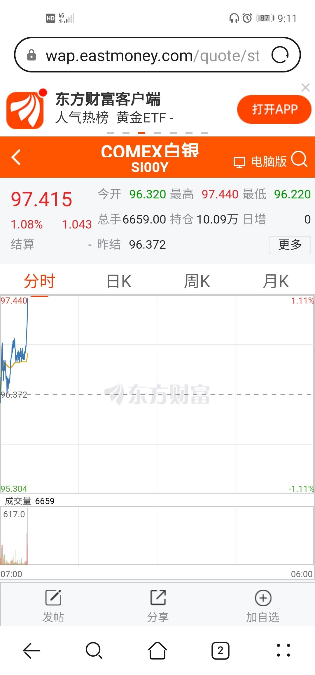 $湖南白银(SZ002716)$ 今天冲100美刀?我?