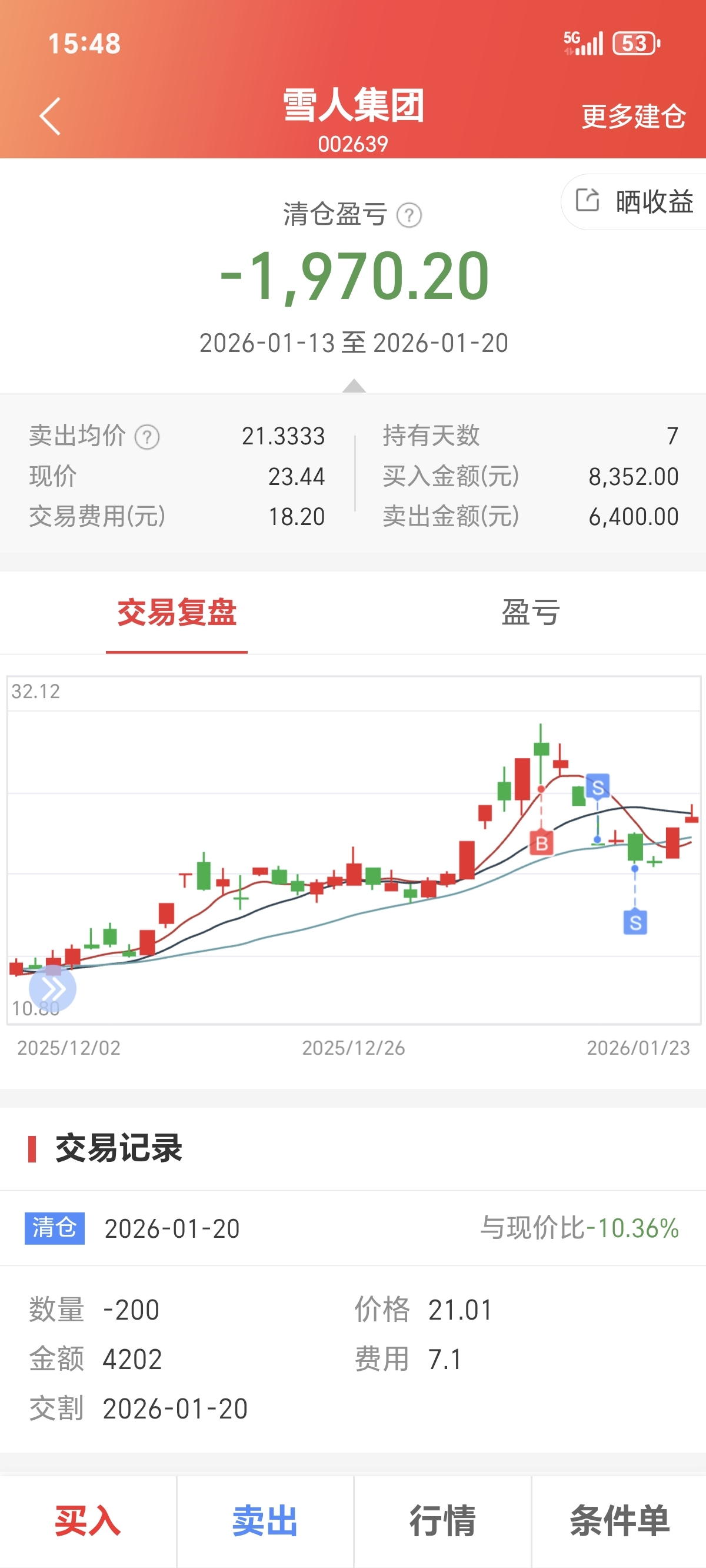 我那天雪人28的时候就是我的成本价,可以卖的,但是我没卖,我就想让它涨,但是呢,连吃了三个跌停,亏了这么多,最后低价卖了