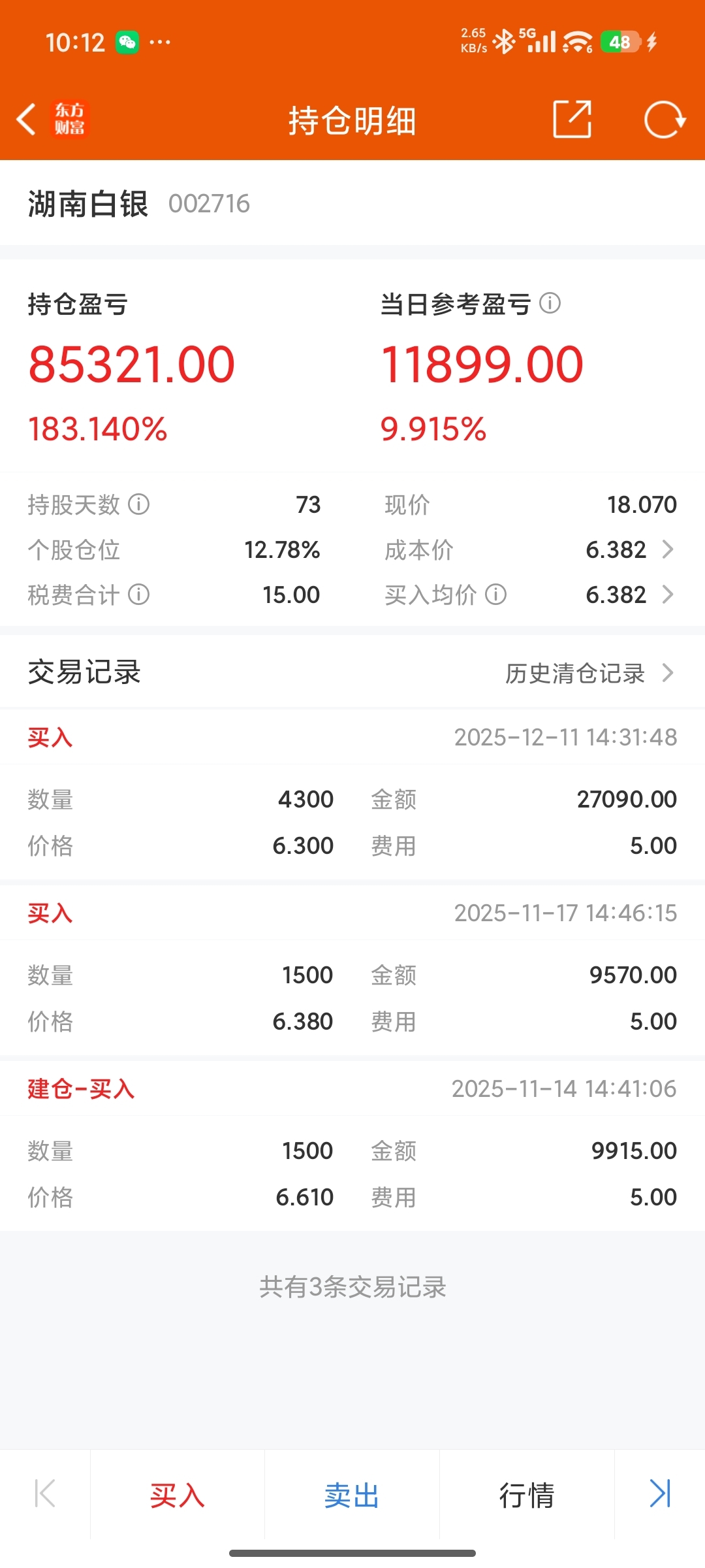 $湖南白银(SZ002716)$ 接近两倍收益,再次纪念,这个时候绝不能追高了,抄底才有超额利润,只适合拿住。#强势机会# #炒股日记#