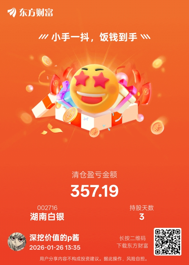 $湖南白银(SZ002716)$ 赚点伙食费跑路了