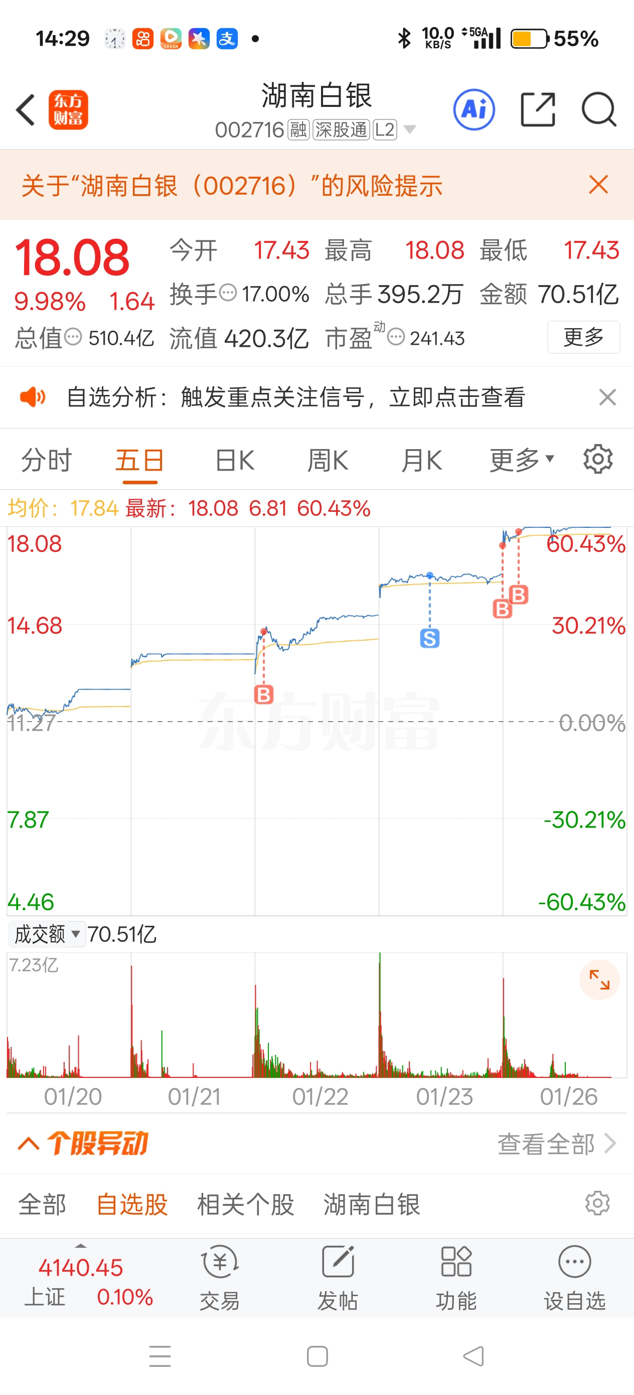 $湖南白银(SZ002716)$ 上周五卖飞,今天高位接回来