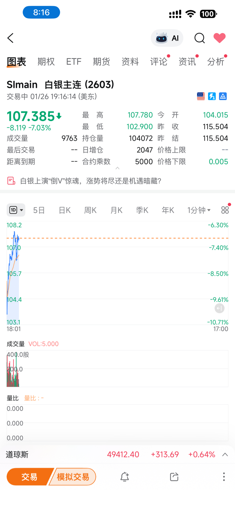 $湖南白银(SZ002716)$ 幸好昨天跑了 美股爆跌今天看戏
