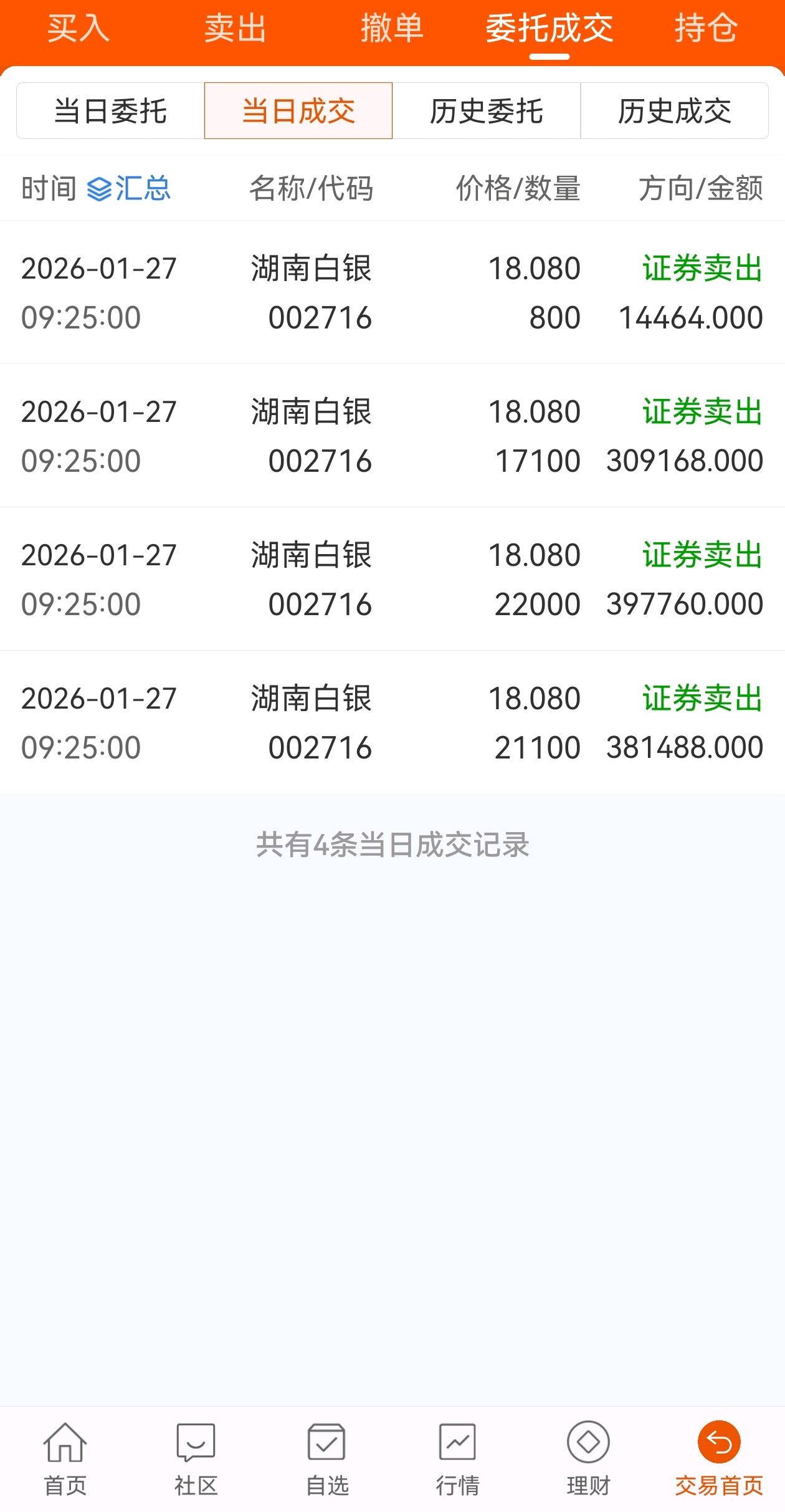 $湖南白银(SZ002716)$ 今早集合竞价全部卖出,感谢庄家,感谢兄弟姐妹们陪伴的日子。
